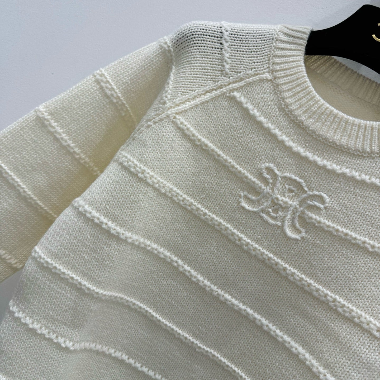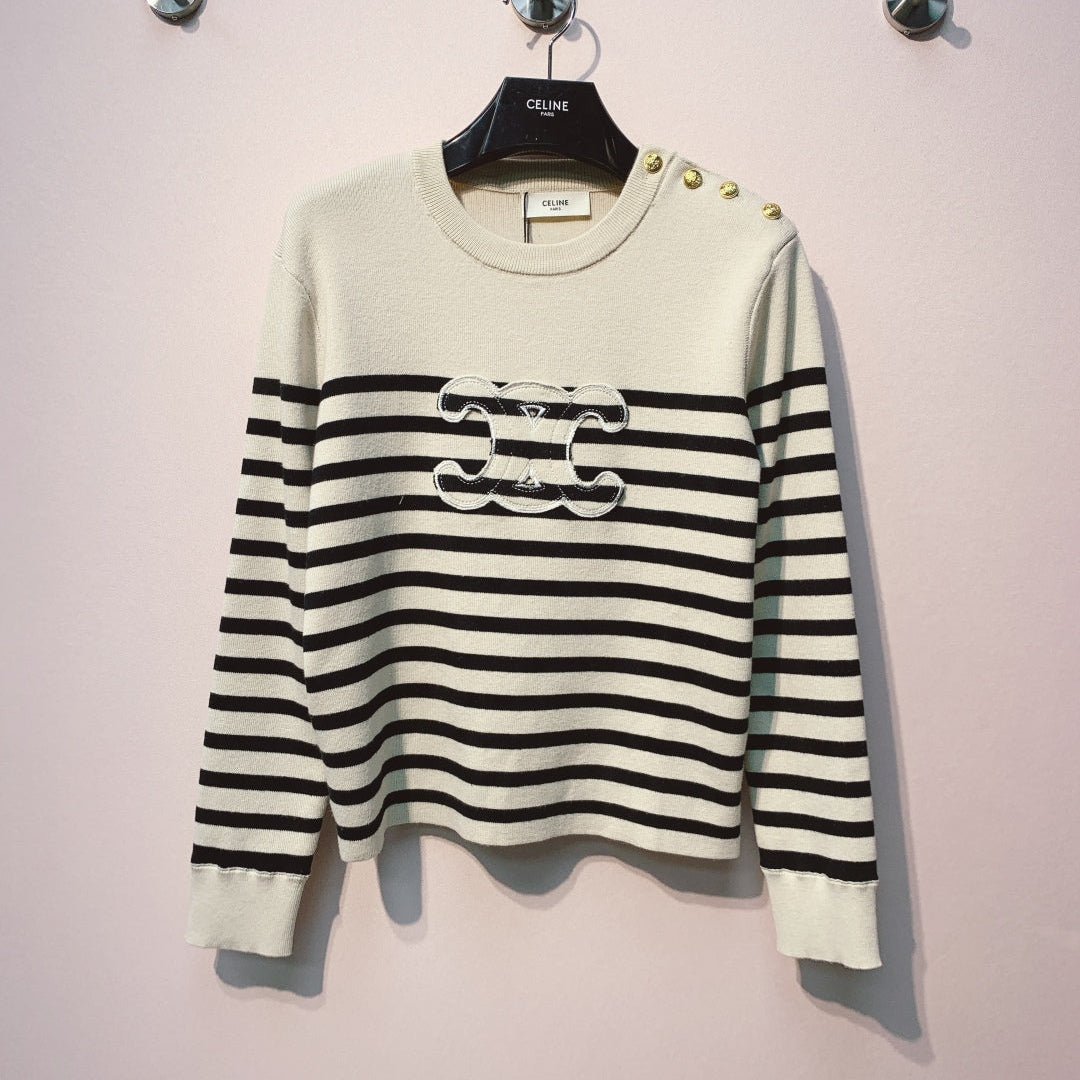 Celine 25 Striped Sweater Cream Black Wool 293418