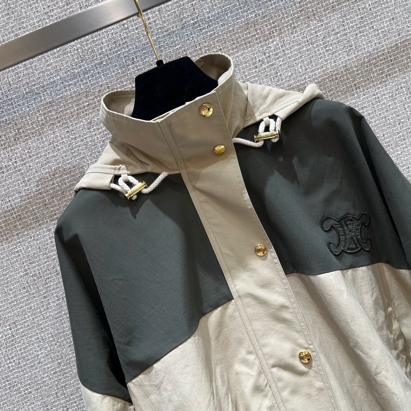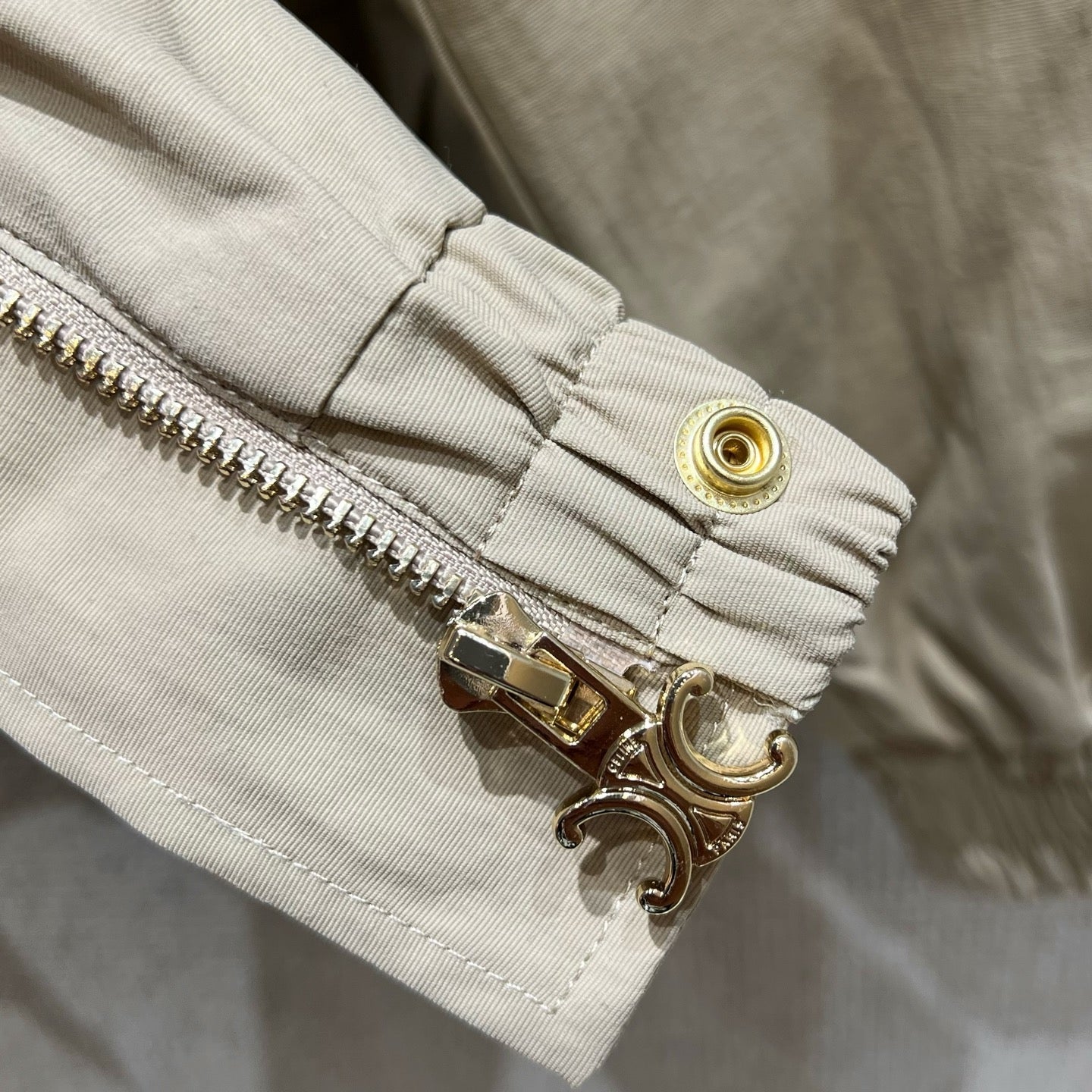 Celine 25 Lapel Short Trench Coat Black Gold Cotton Polyester