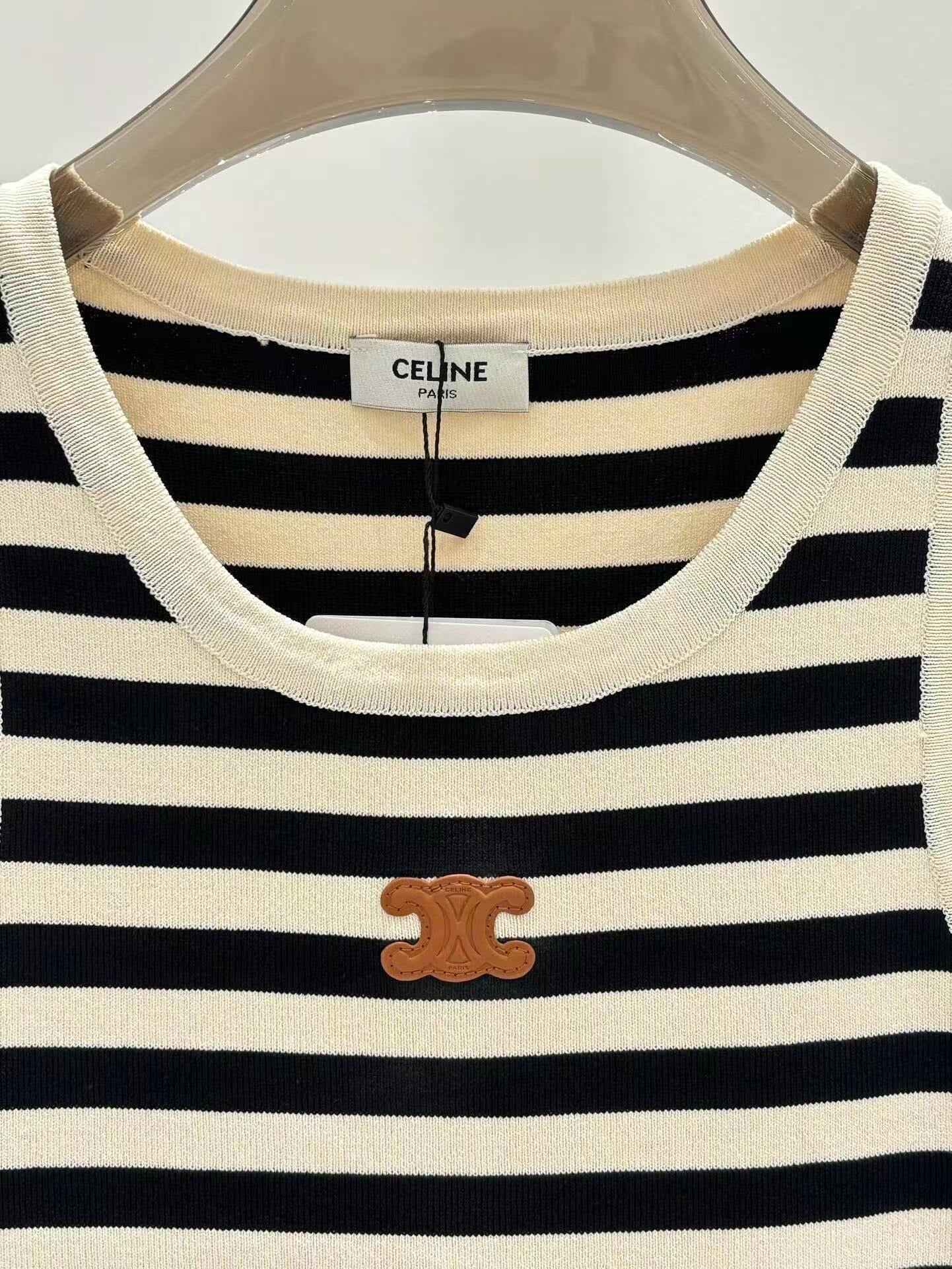 Celin Black Beige Stripe Tank Top