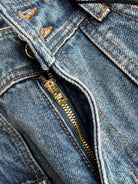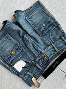 Celine 25 Arc de Triomphe Metal Buckle Denim Shorts Blue Cotton 275804