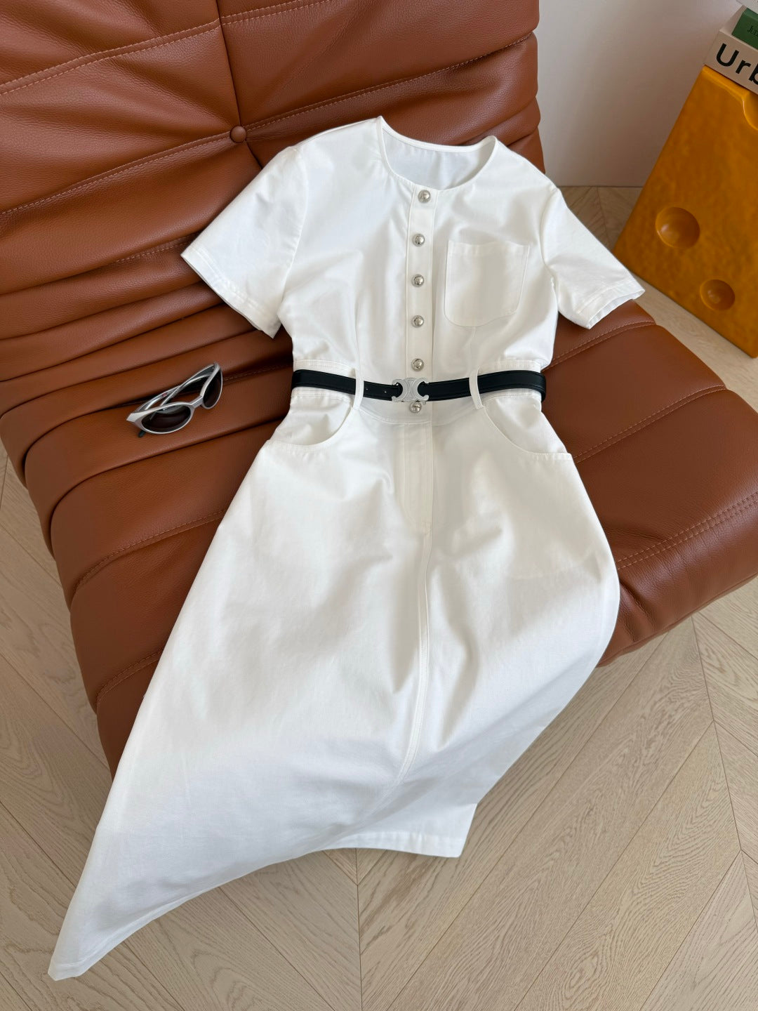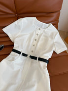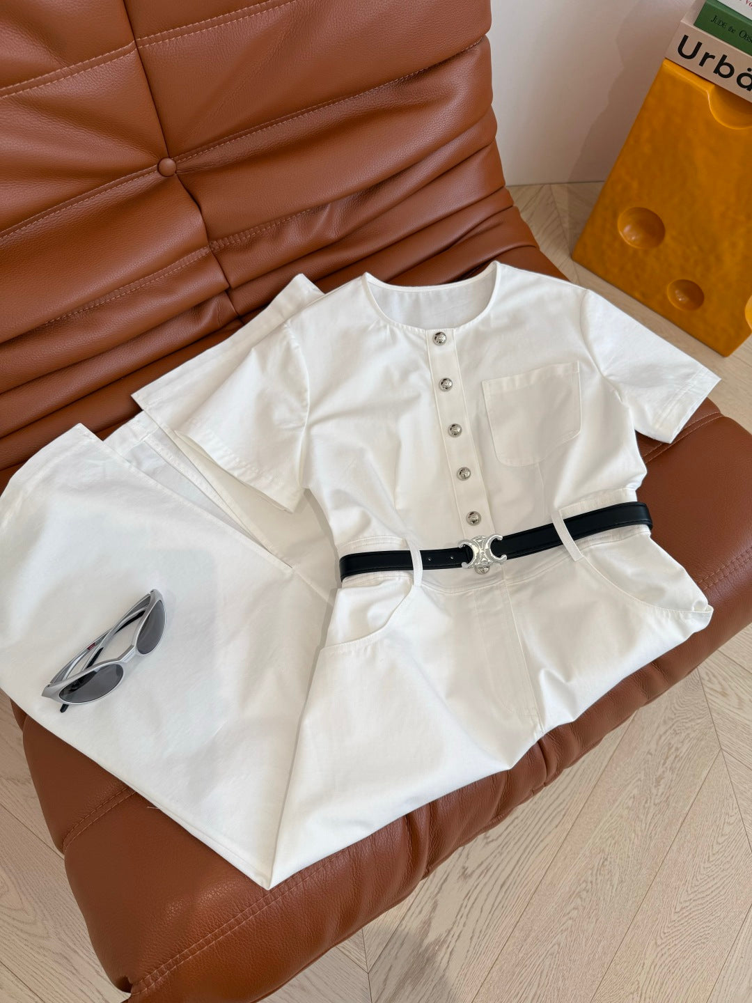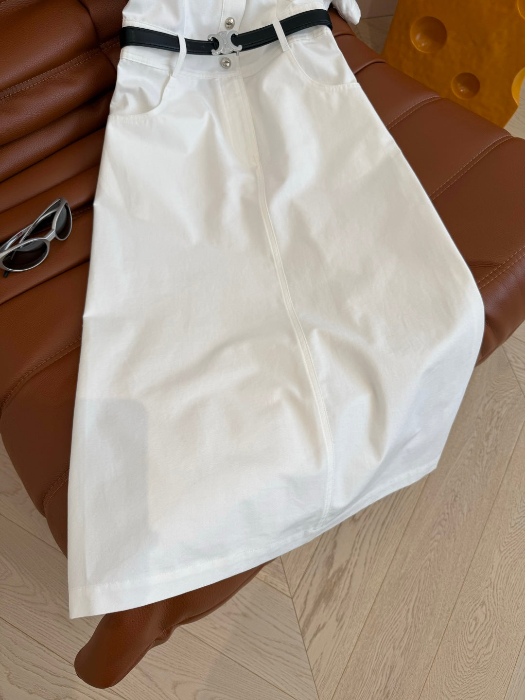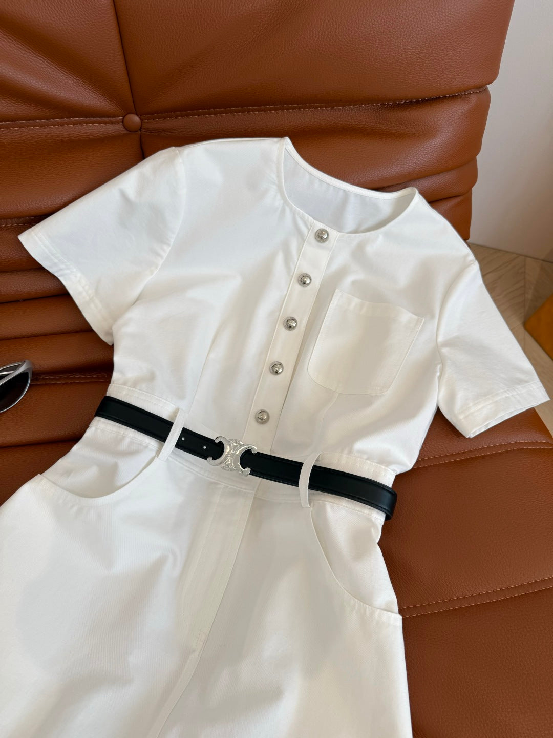 Celine 25 Denim Dress With Silver Buckle Belt White Cotton
