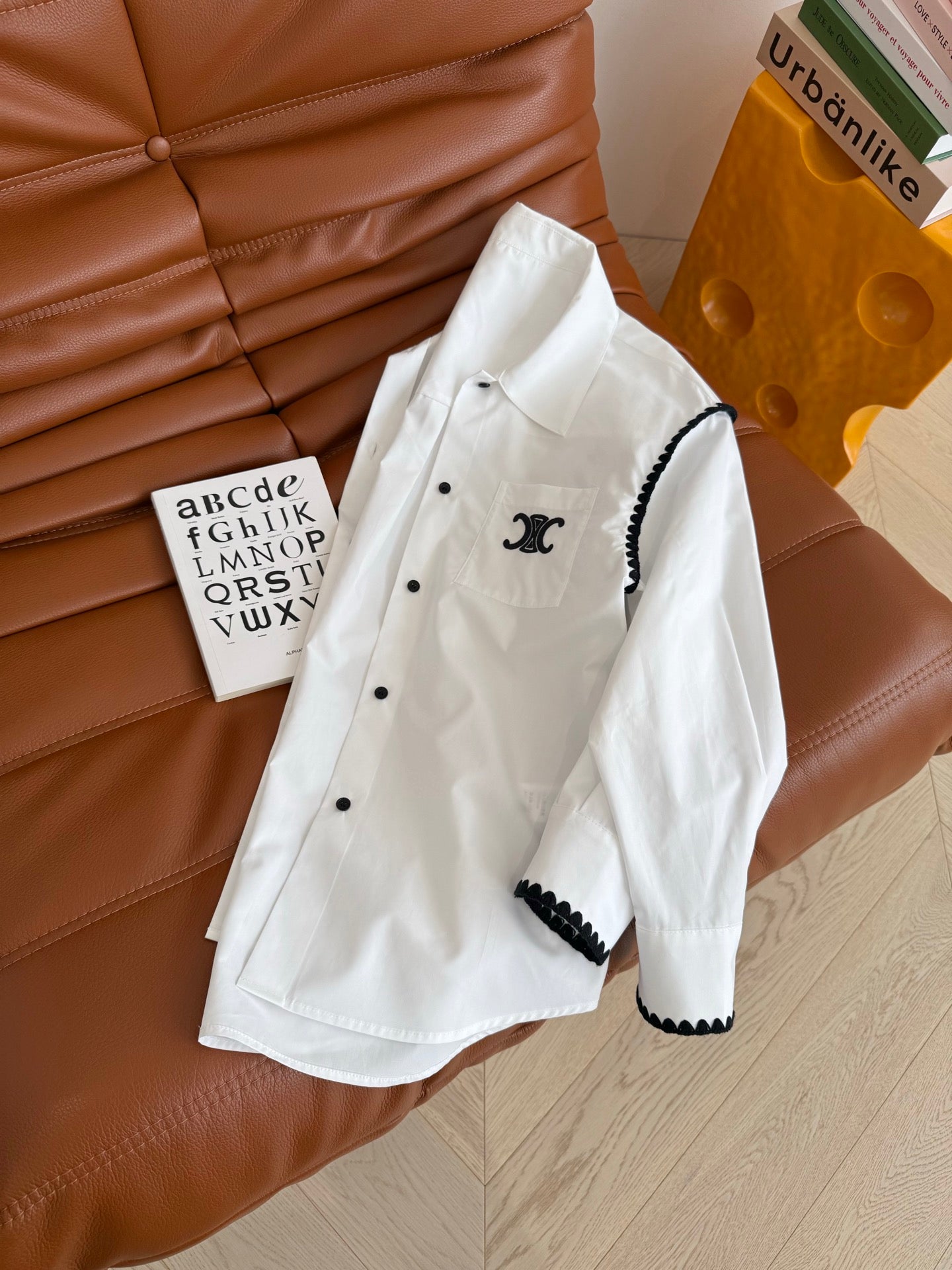 Celine 25 Embroidery Lace Shirt White mix Black Cotton
