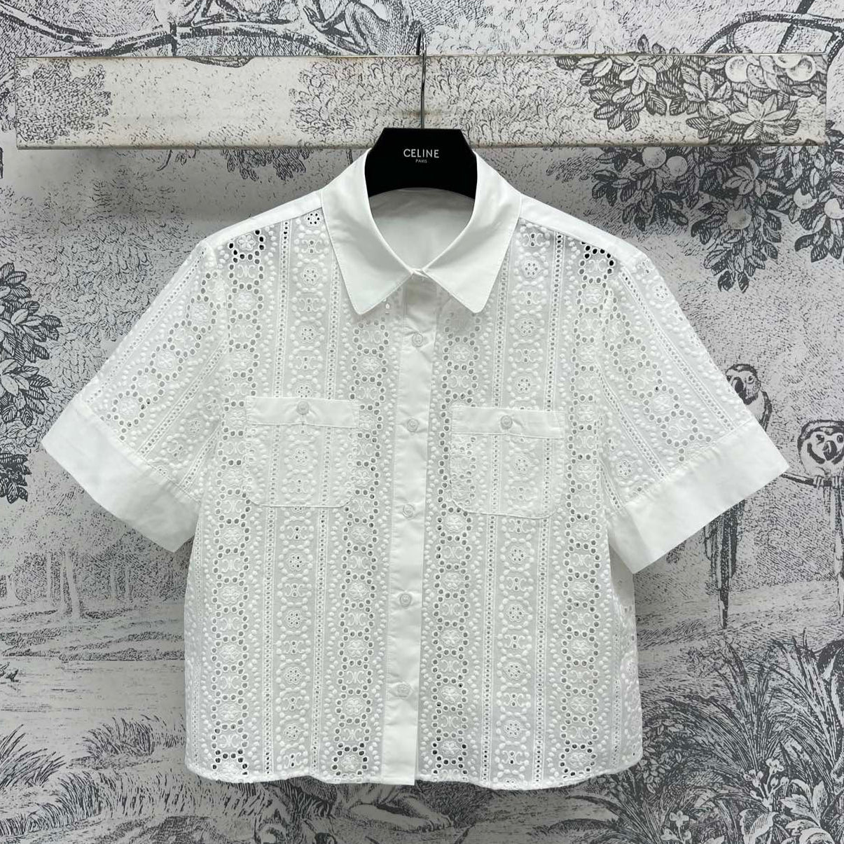 Celine 25 Lace Short Shirt White Cotton