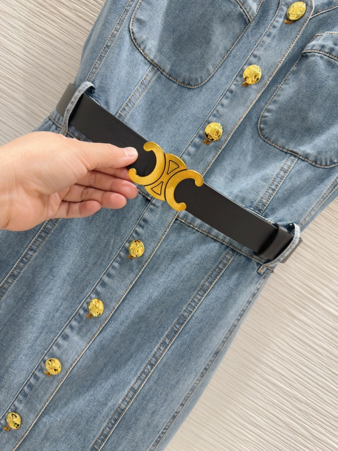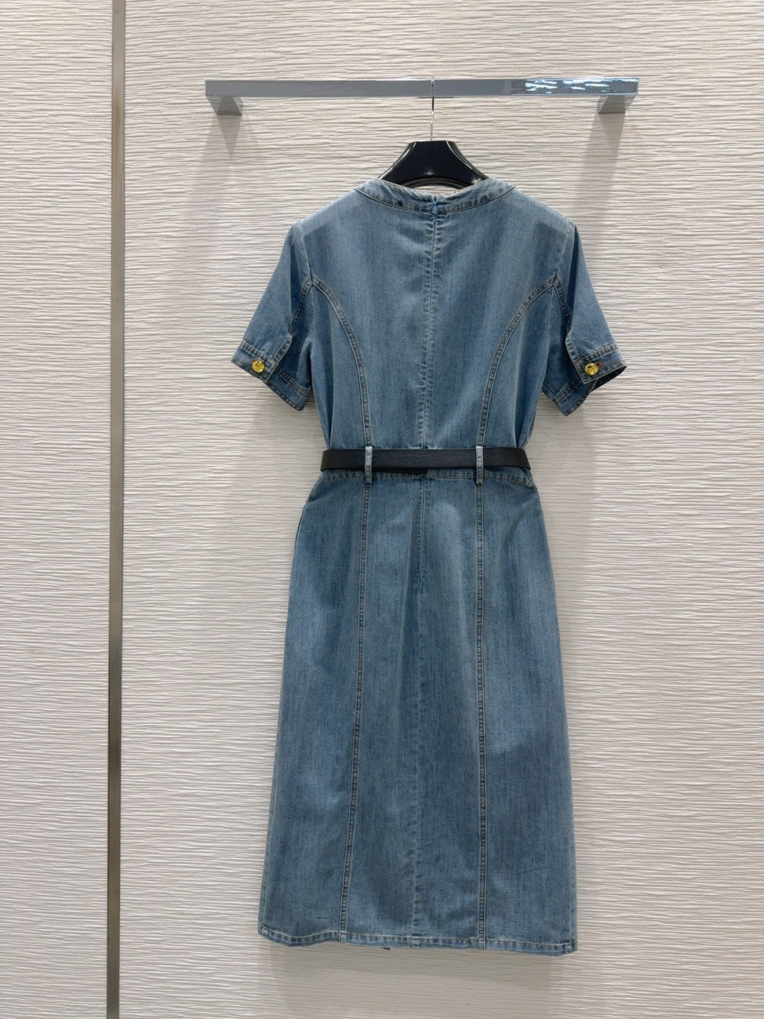 Celine 25 Short-sleeve Denim Dress Blue Cotton