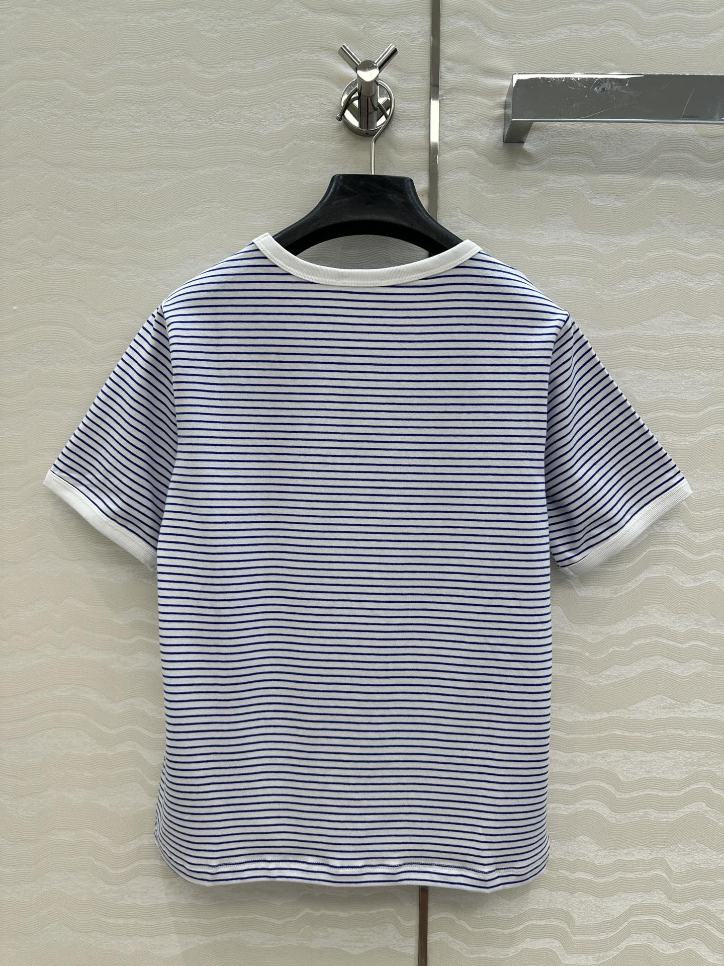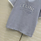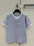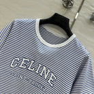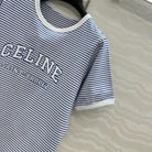 Celine 25 Striped Letter Short-sleeved T-shirt Blue White Cotton