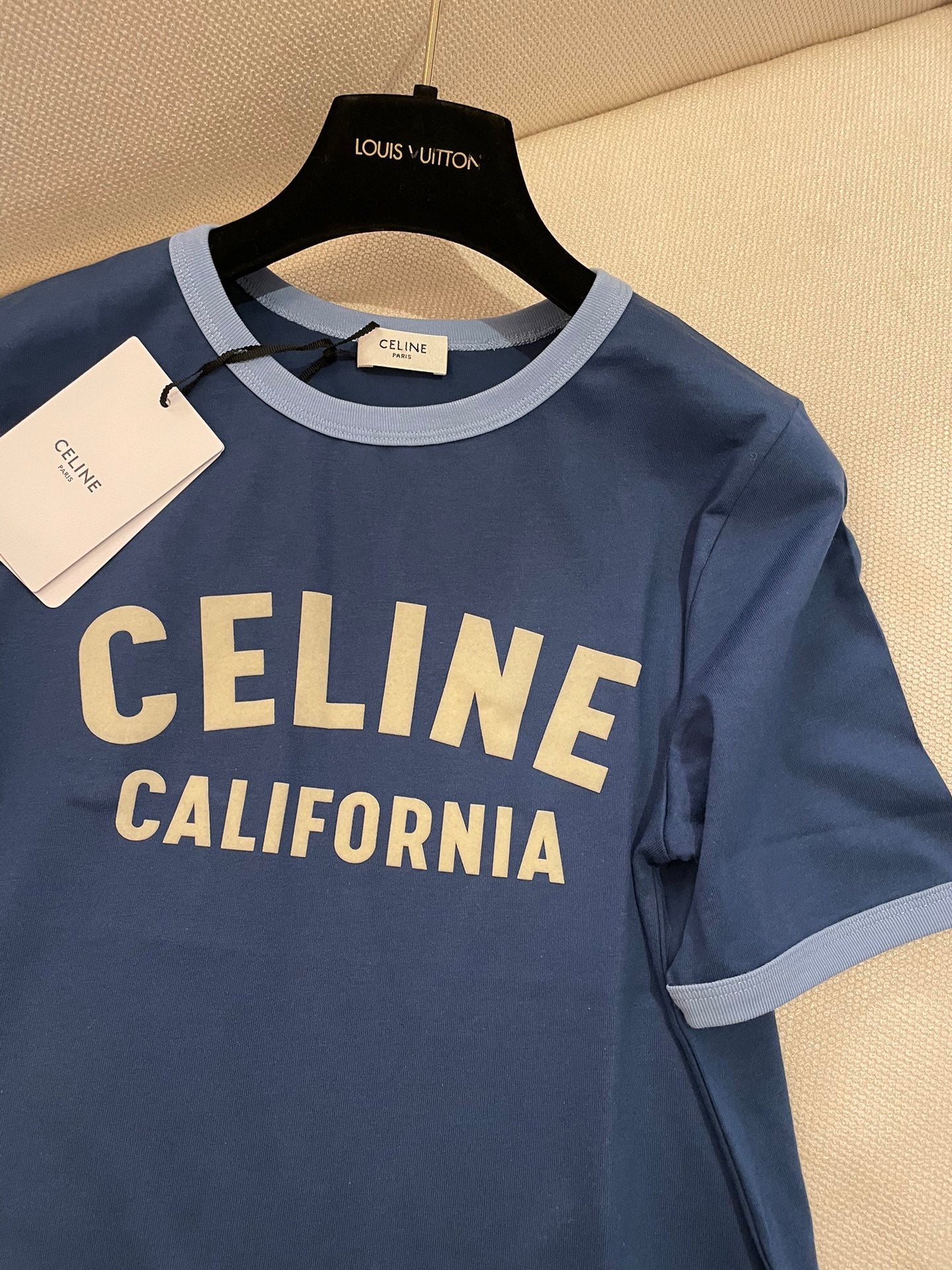Celine 25 T-shirt Blue mix Light Yellow Cotton