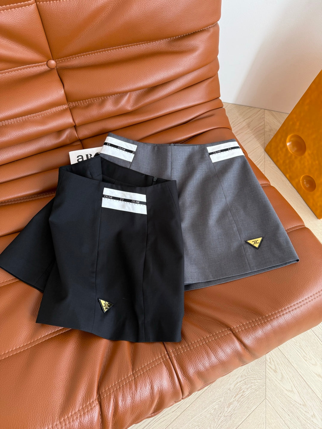 Celine 25 Wide-leg Shorts Black and Gray Polyester