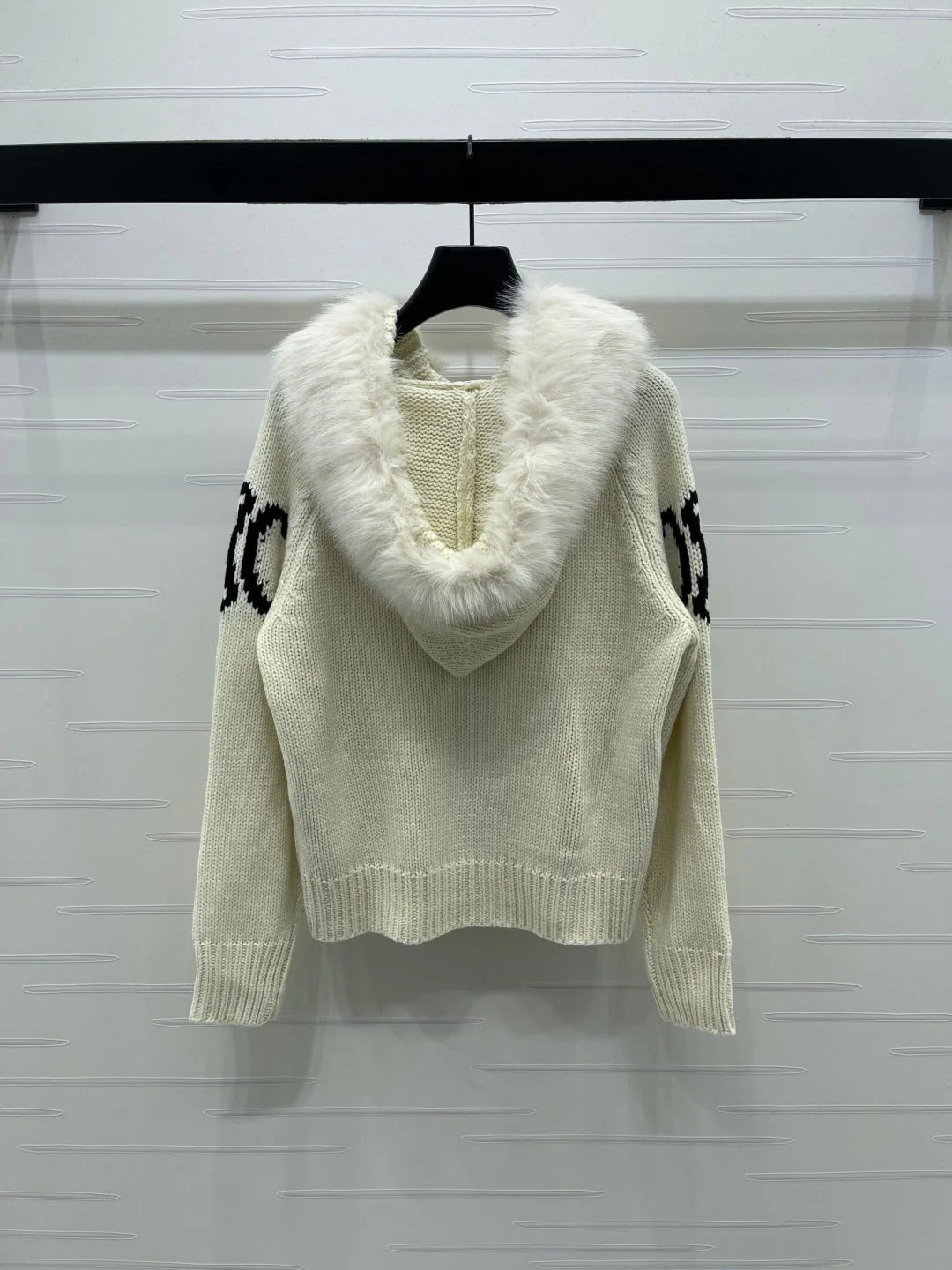 CELINE 25S HOODED CARDIGAN WITH FUR TRIM 0089