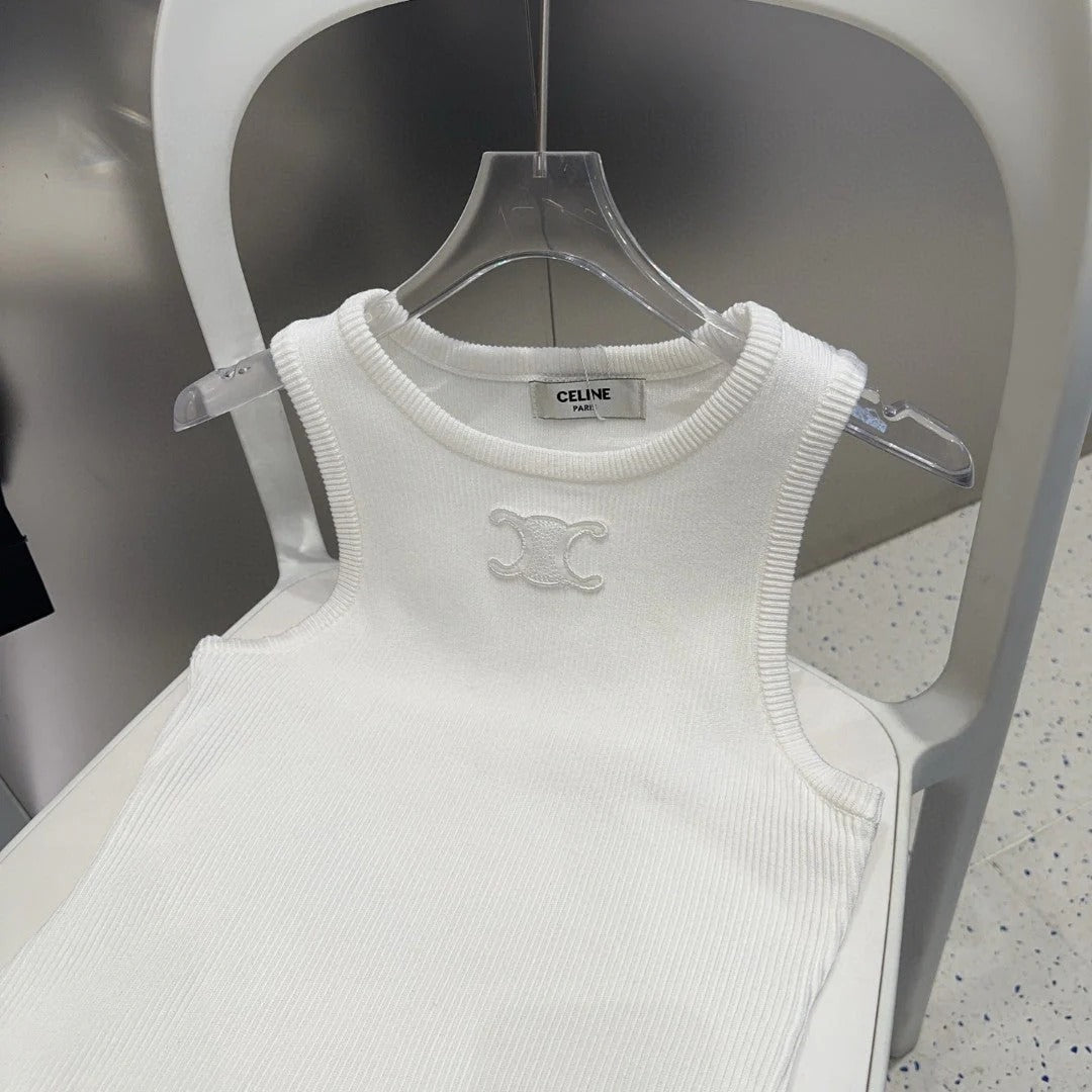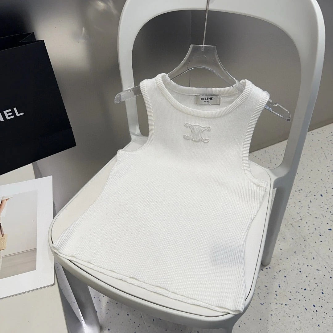 TANK TOP 633207 IN BLACK COTTON RIBBED KNIT EMBOSSED LOGO