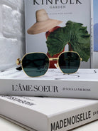TRIOMPHE SUNGLASS 497821 IN GOLD METAL DARK TEAL LENSES