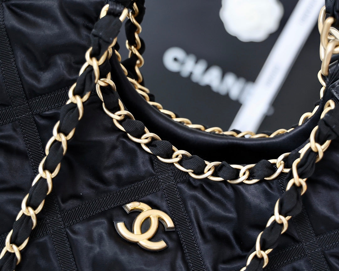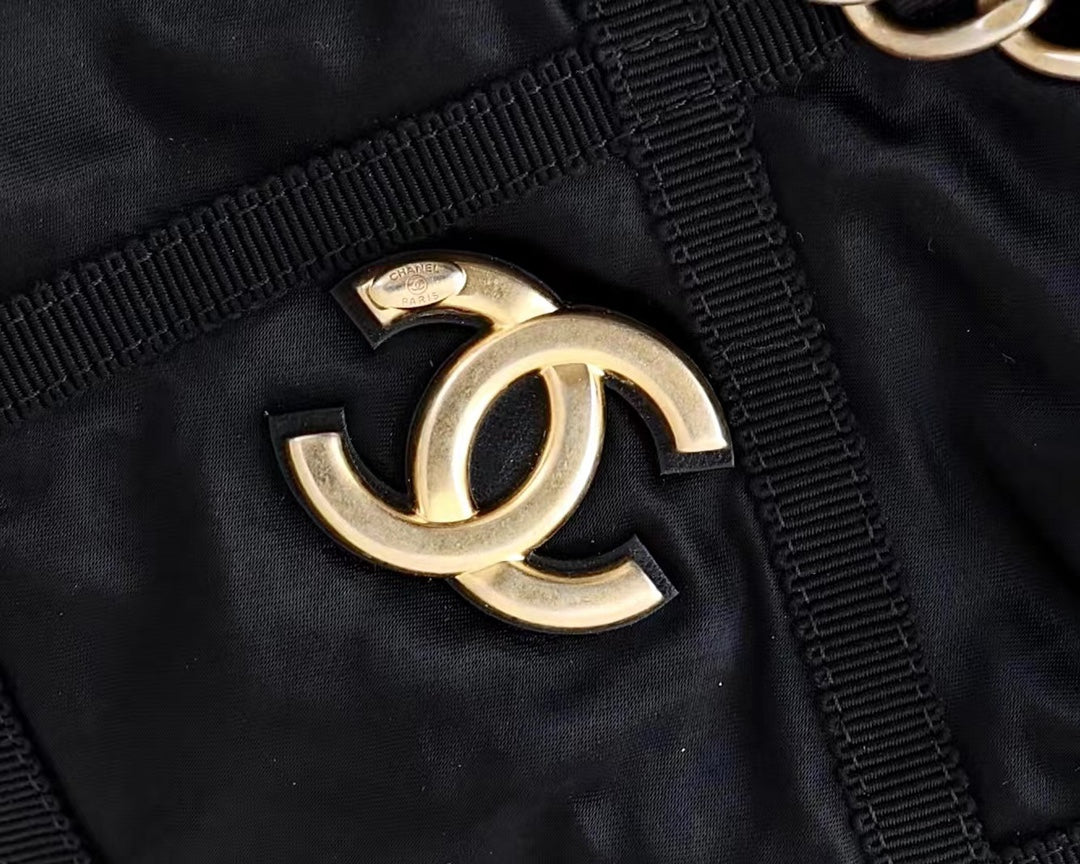 CC 22P Maxi Shopping Bag Black Nylon with Grosgrain
