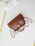 CC 24A Top Handle 23.5cm Brown Wax Leather Gold Hardware 238471