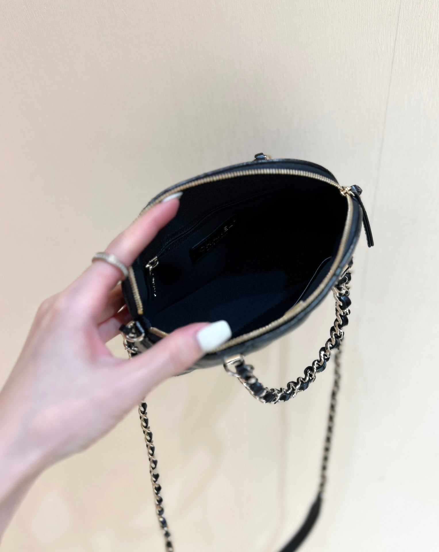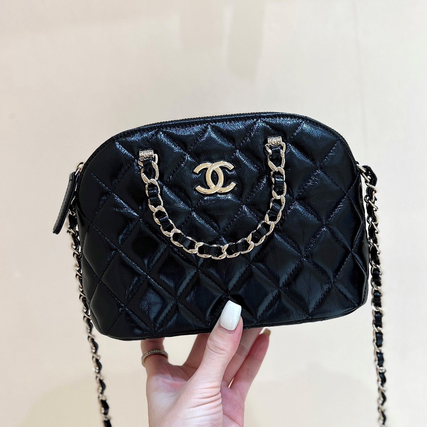 CC 24B AS5130 Small Shell Bag 20cm Black Polished Lambskin