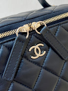 CC 24K Handle Camera Bag 23cm Black Lambskin Light GHW