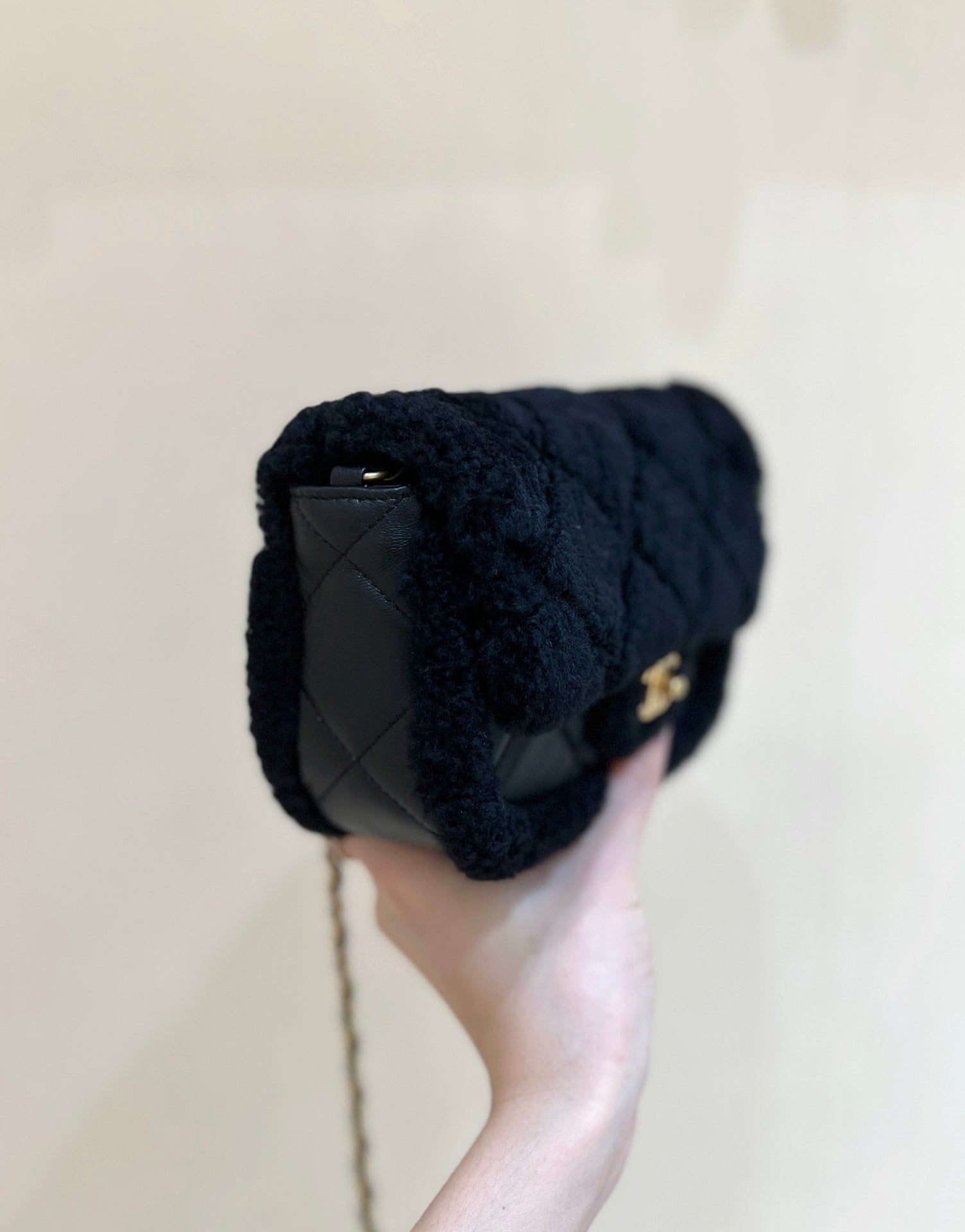 CC 24K Teddy Bear CF 18 cm Black Lambskin & Fur Light GHW