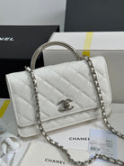 CC 25P Wallet Woc Handle 19cm White Leather Silver Hardware 243451