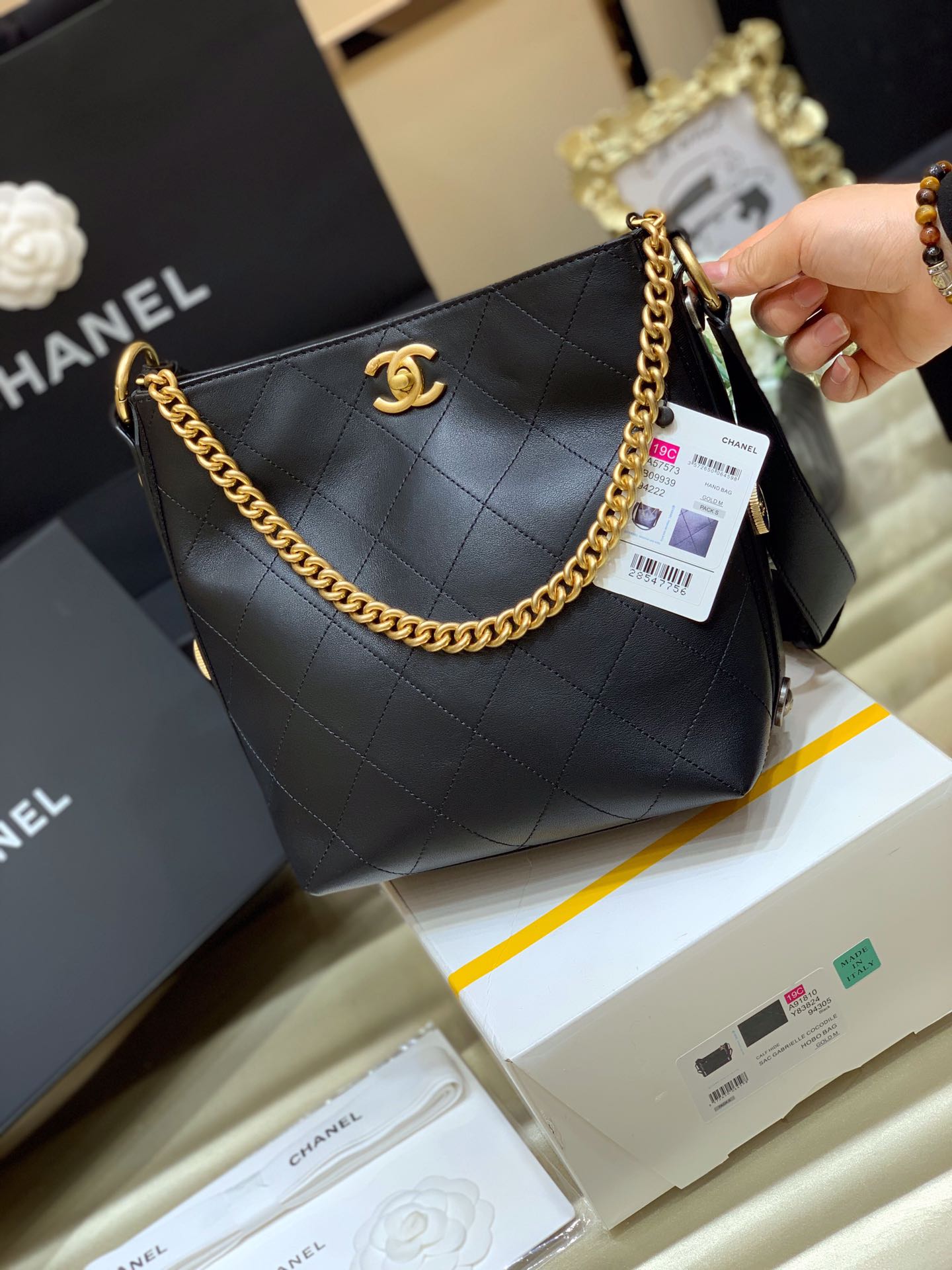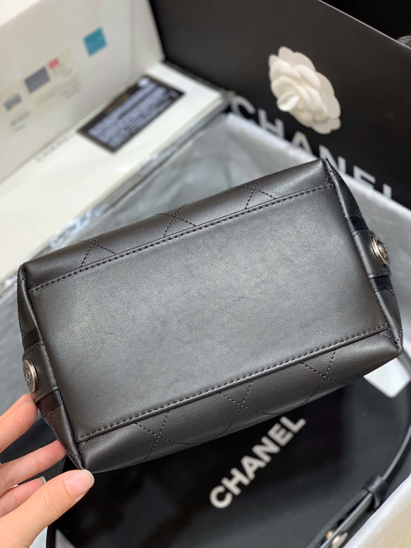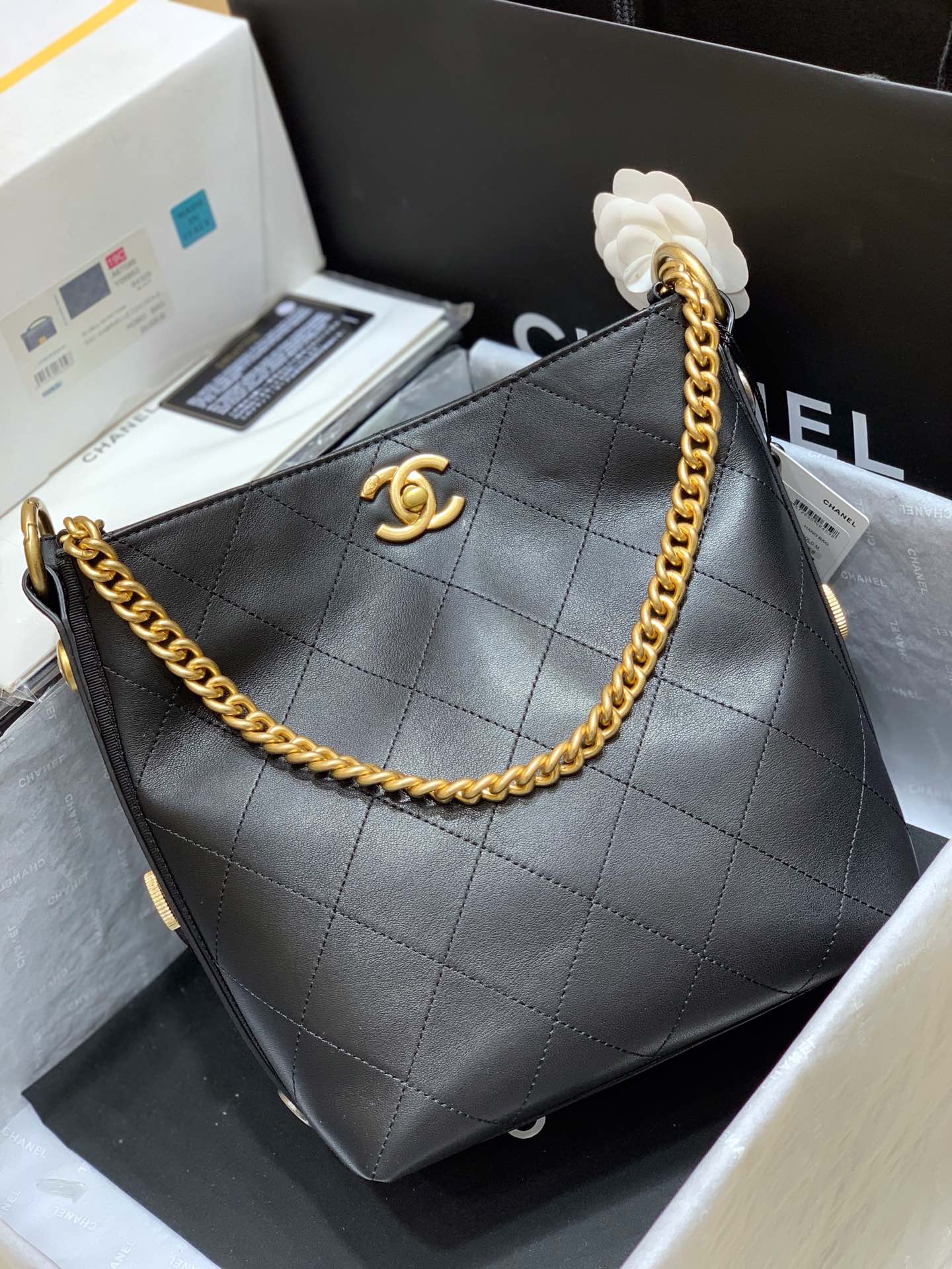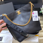 CC Button Up Hobo 23cm Black Cowhide & Grosgrain GHW
