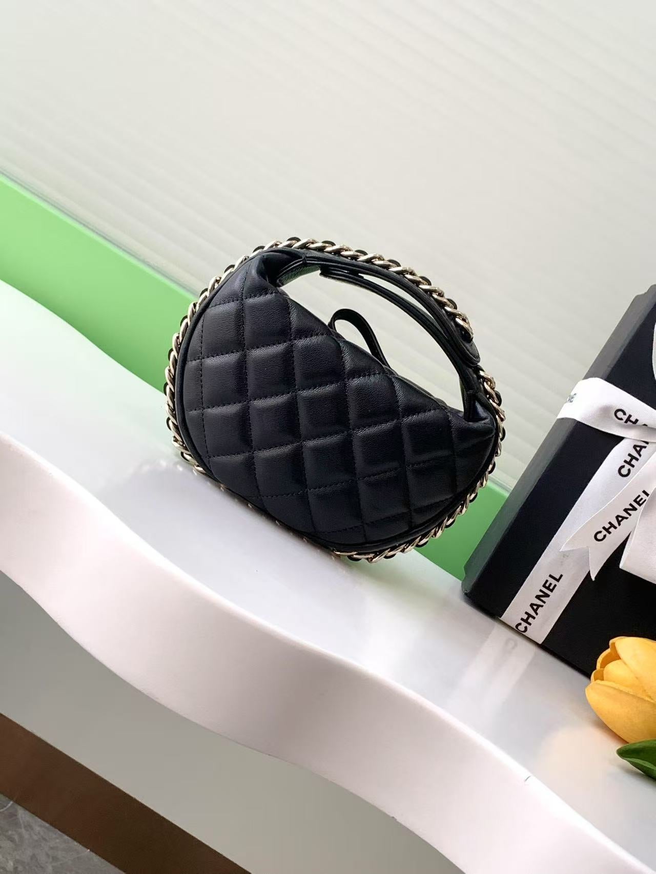 CC CHANEL Hula Hoop Clutch Black Calfskin