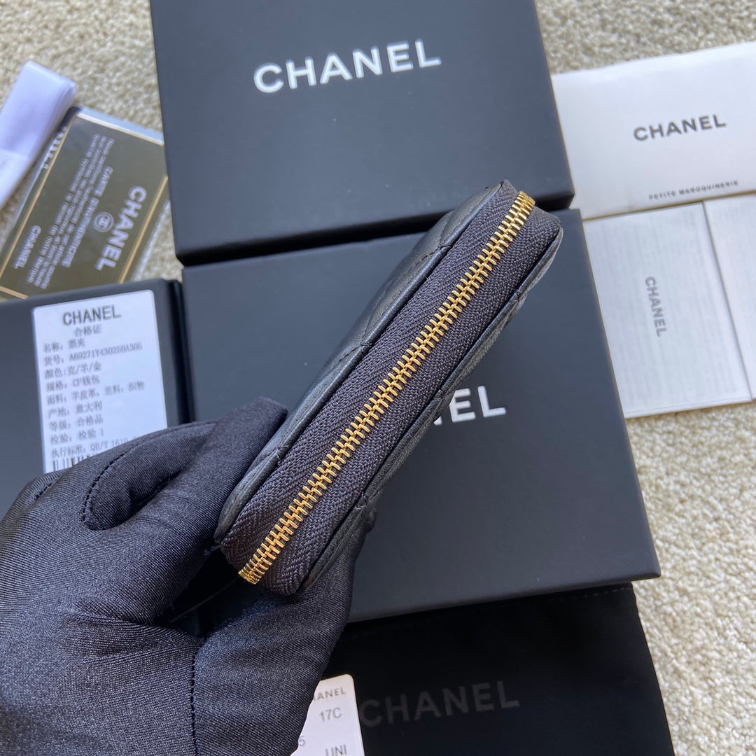 CC Classic Zipper Card Holder Black Sheepskin GHW 156537