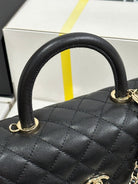 CC Coco Handle Flap Bag 24 Black Quilted Caviar Light Gold Hardware 243475