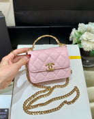 CC Handle Small Shoulder Bag 13cm Pink Sheepskin
