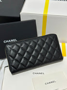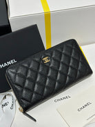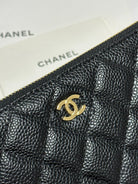 CC Long Zipped Wallet Black Quilted Caviar Gold Buckle 243681