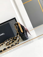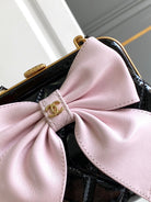 CC MINI 13 CLUTCH WITH STRAP IN BLACK LAMBSKIN AND PINK BOW