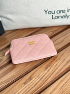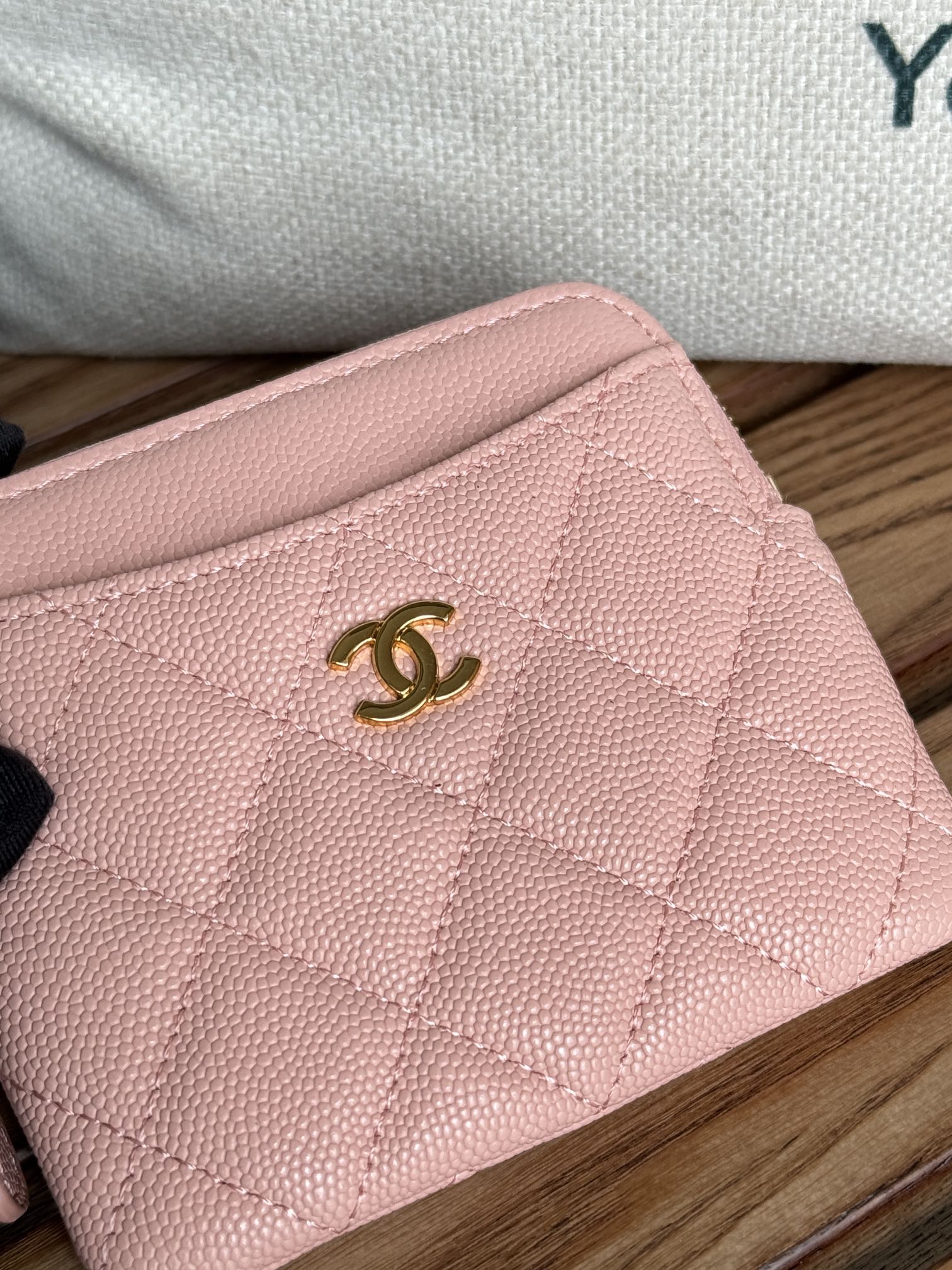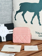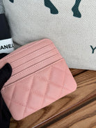 CC Zip Card Holder Wallet Light Pink Gold Metal Caviar 240615