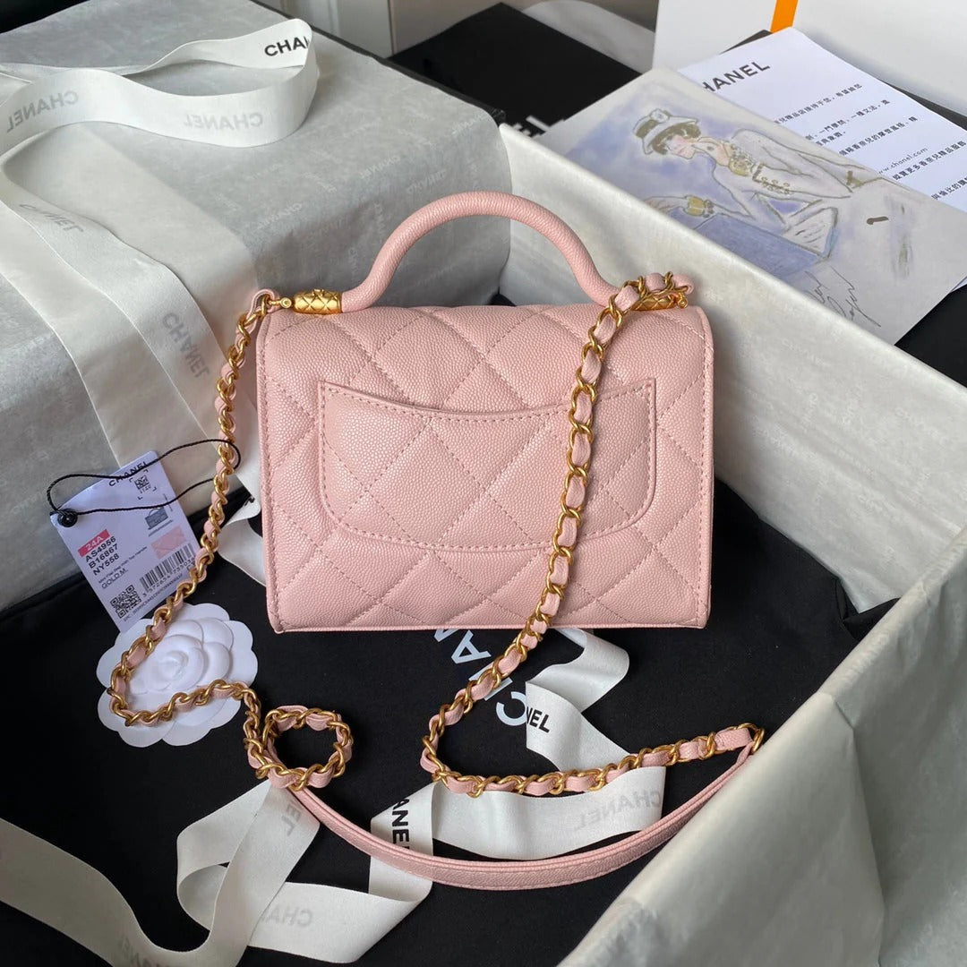 CC 25S FLAP BAG 18 CM IN LIGHT PINK GRAINED LAMBSKIN WITH TOP HANDLE