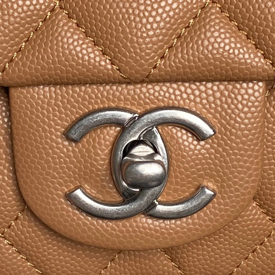CHANEL 25S FLAP BAG 19 IN CARAMEL CALFSKIN SILVER HARDWARE