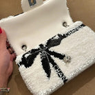 CC 25S FLAP BAG 20 CM IN WHITE SEQUINS WITH BLACK BOW