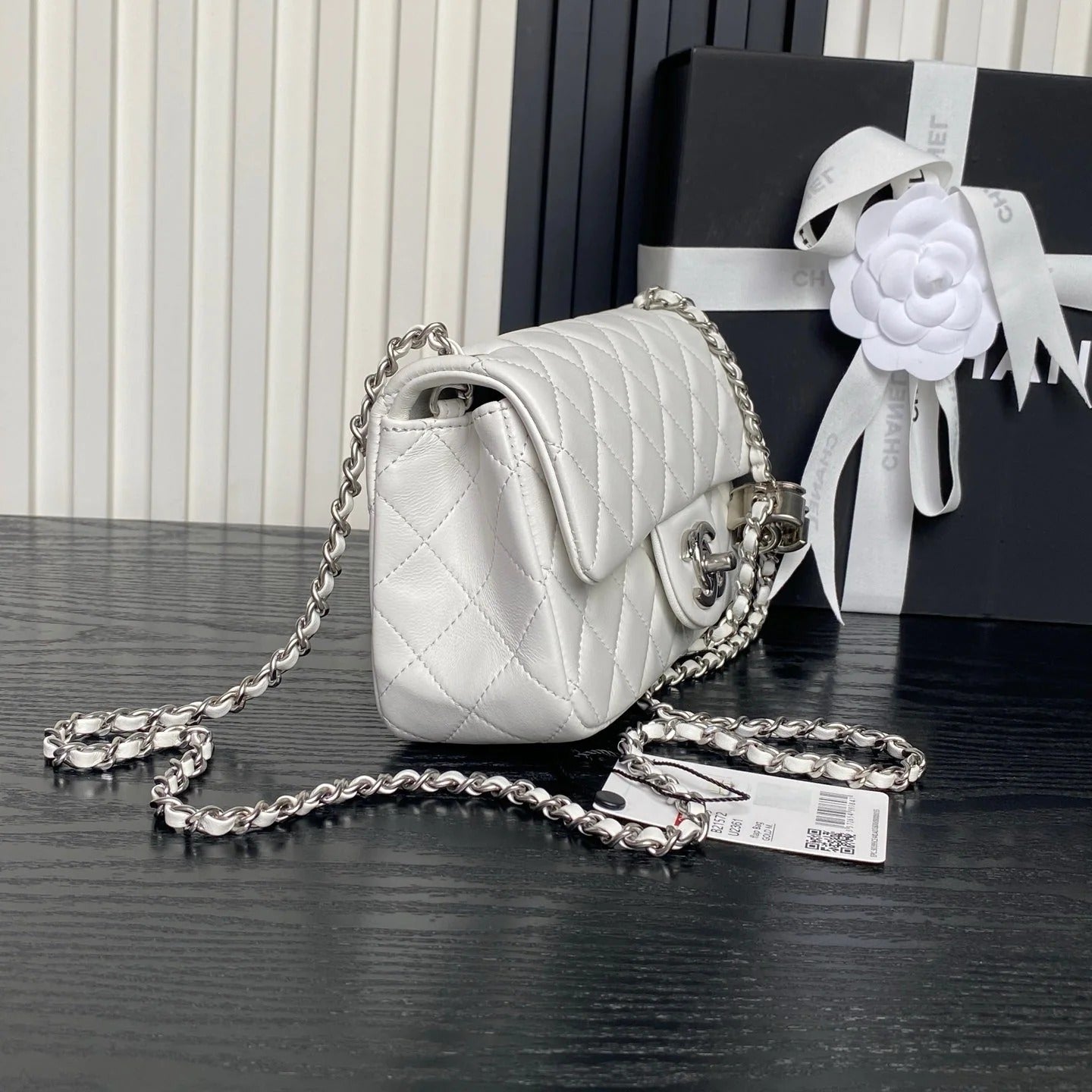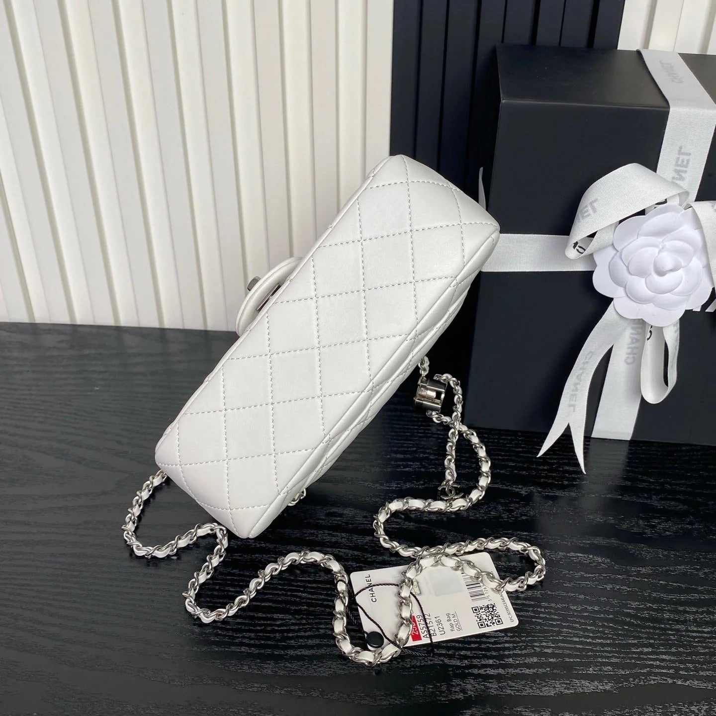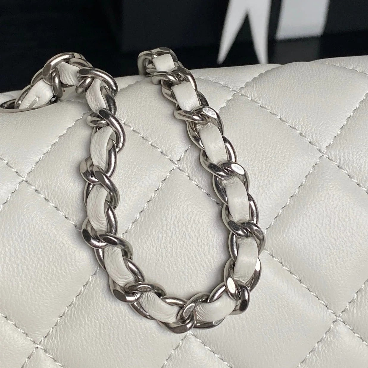CHANEL 25S FLAP BAG 20 IN WHITE CALFSKIN SILVER HARDWARE