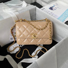 CHANEL 25S MINI FLAP BAG 19 IN TAN BROWN CALFSKIN GOLD HARDWARE