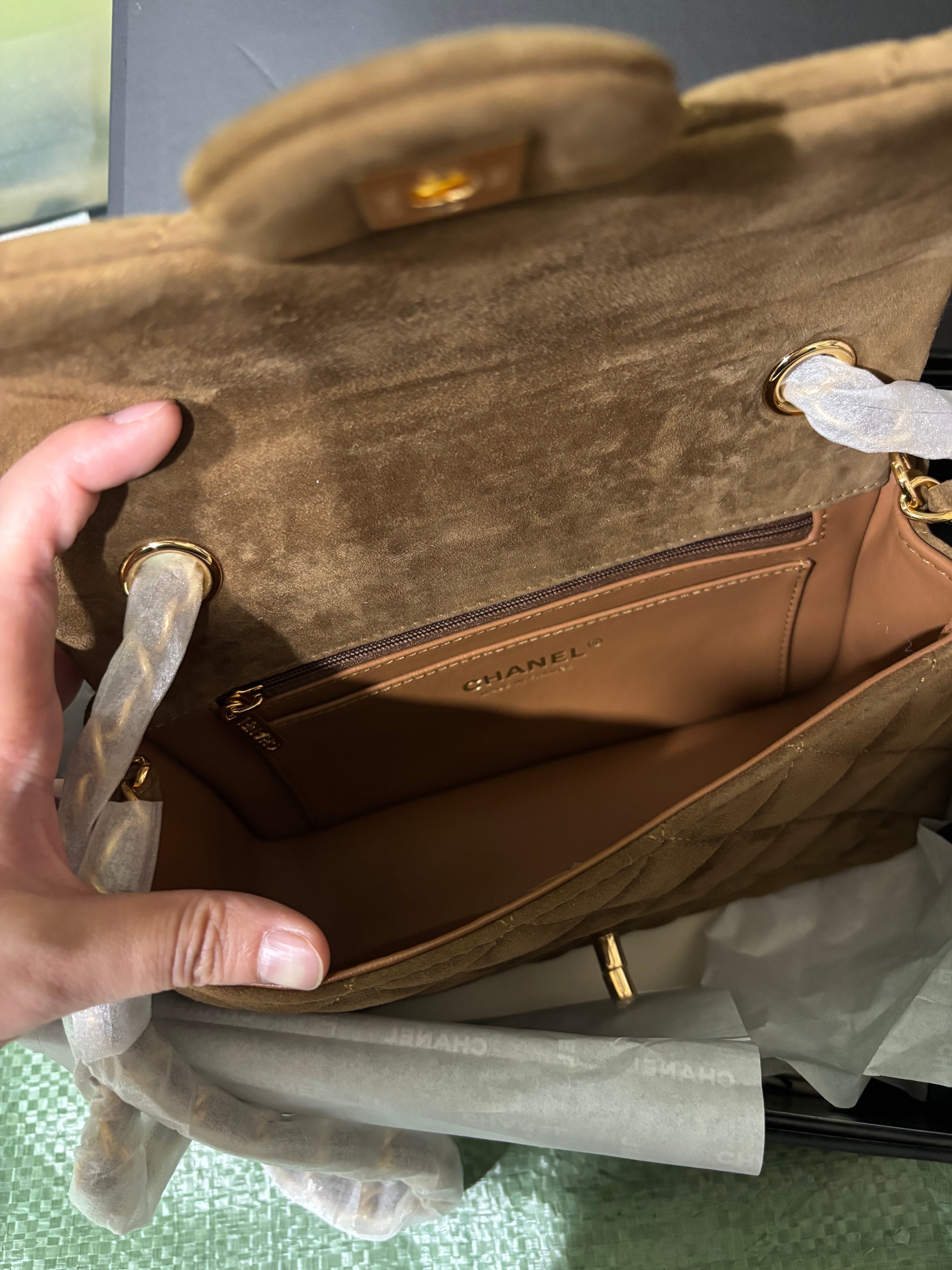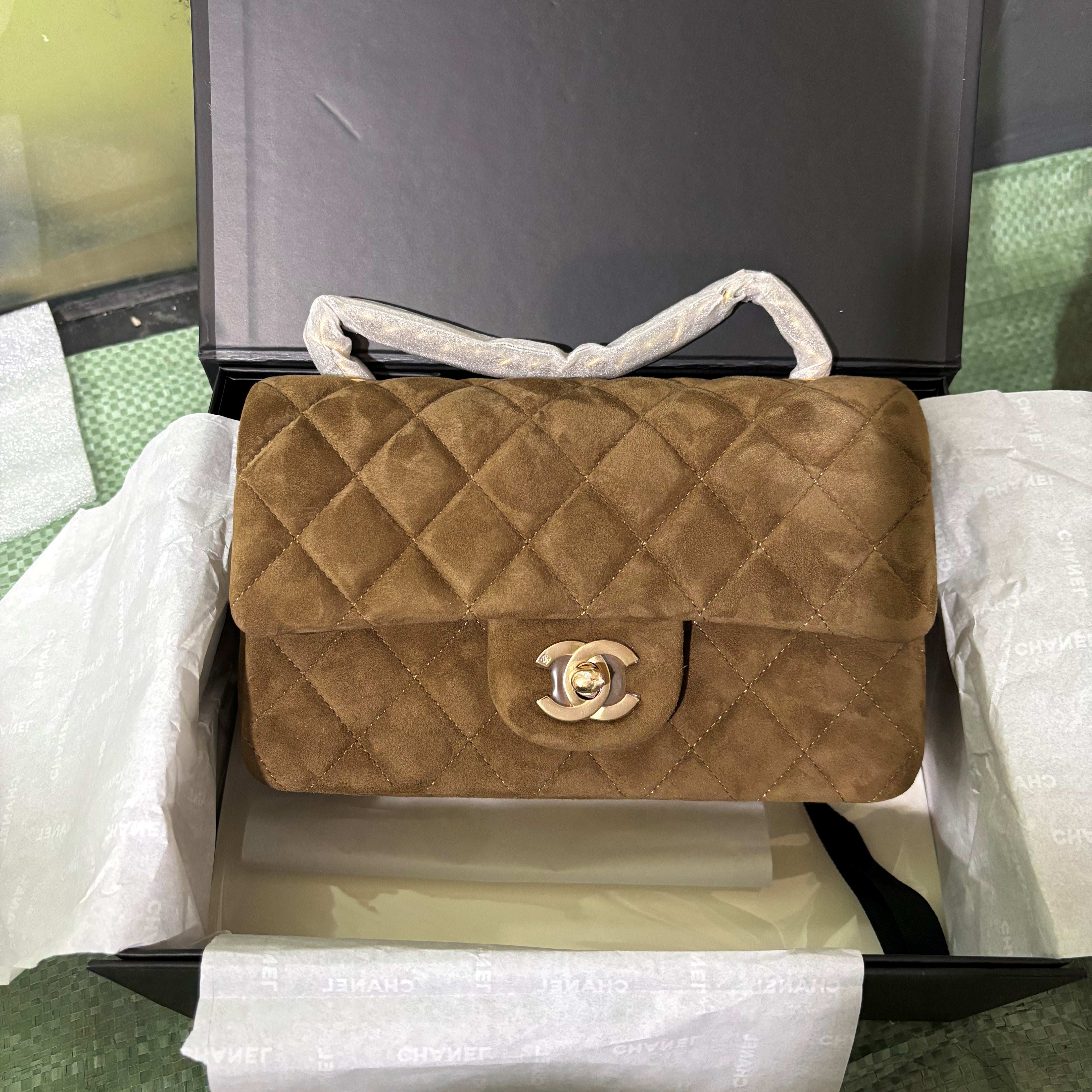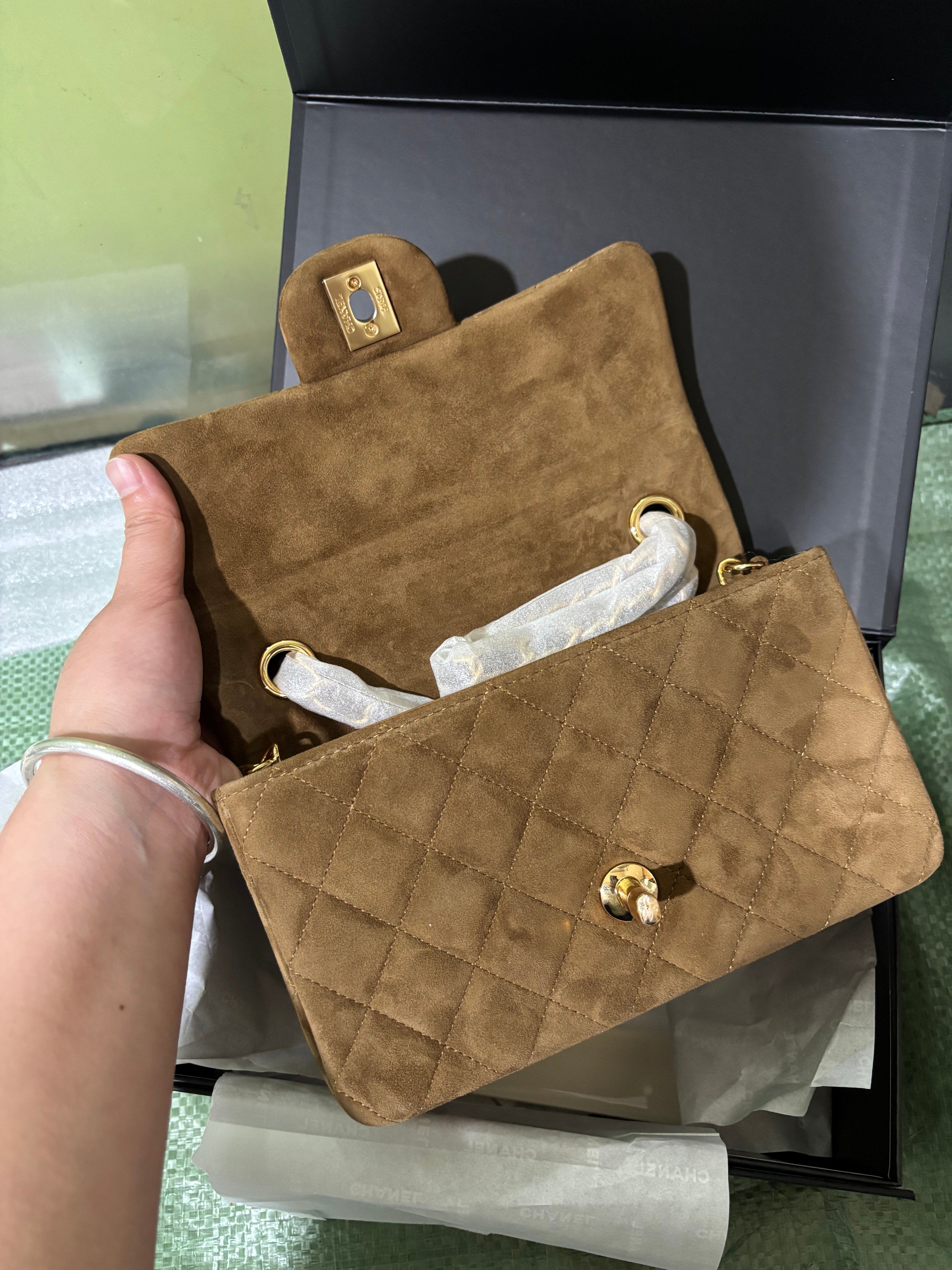 Classic Flap Bag 20cm Brown Suede Gold Hardware