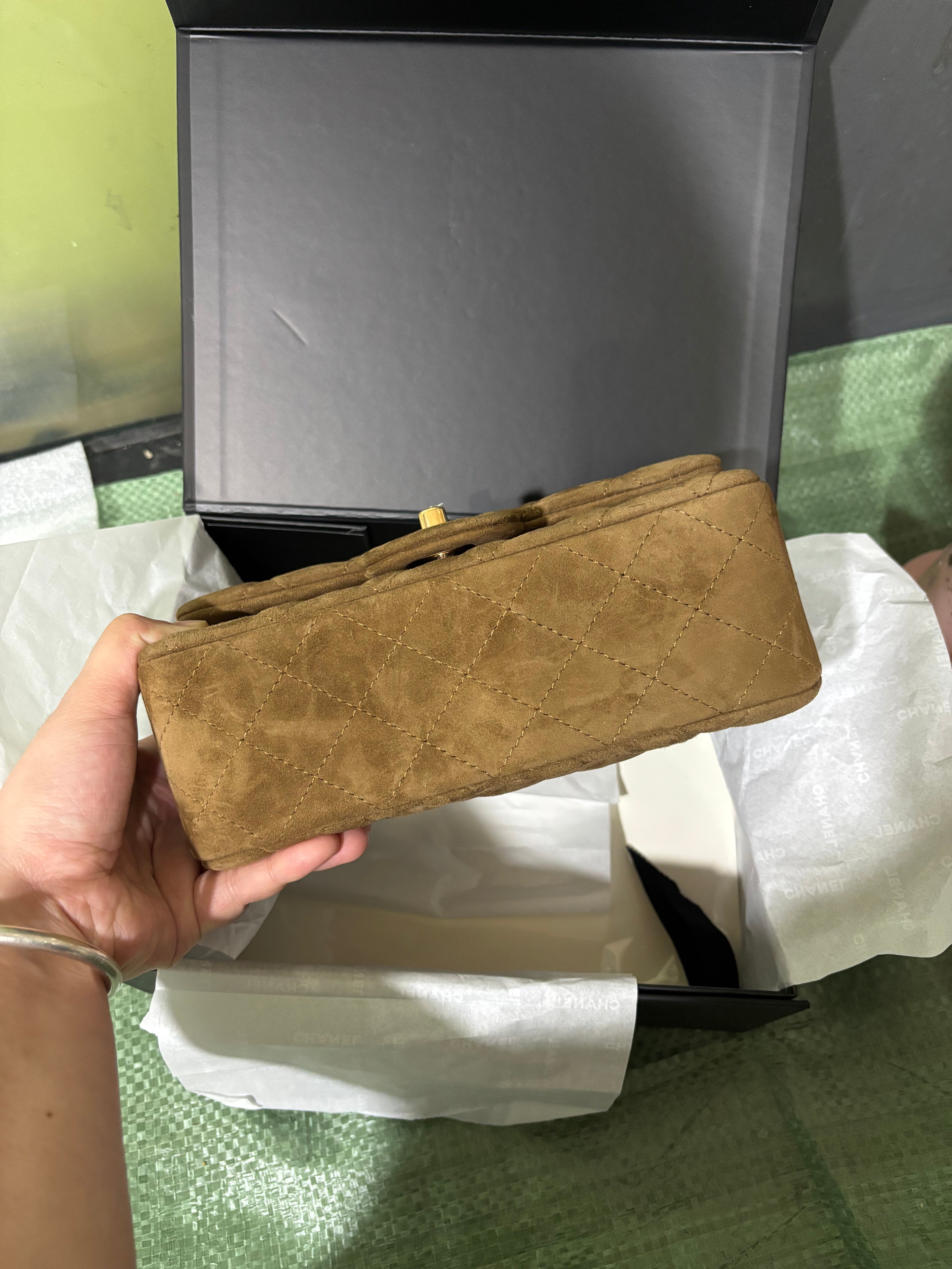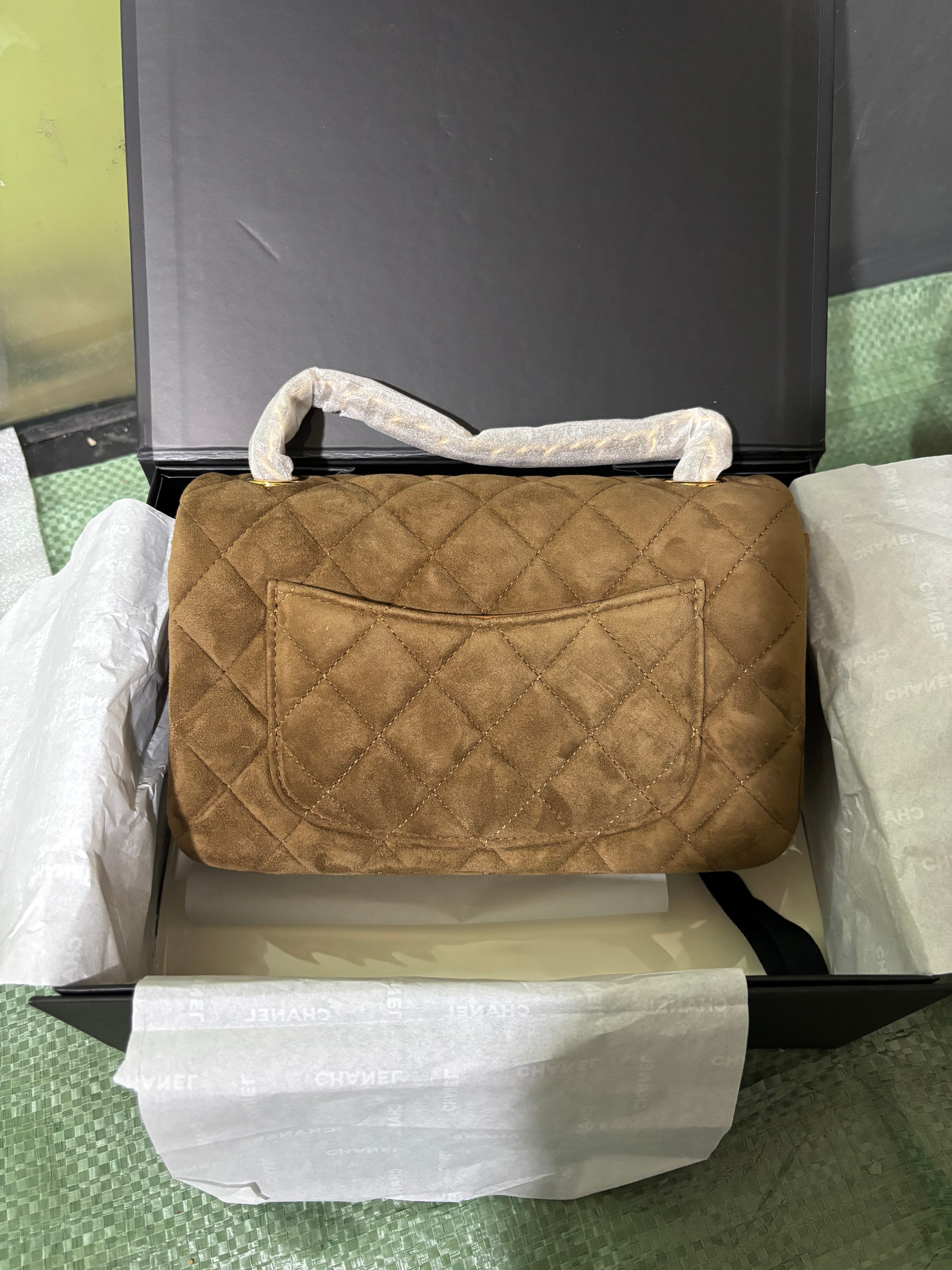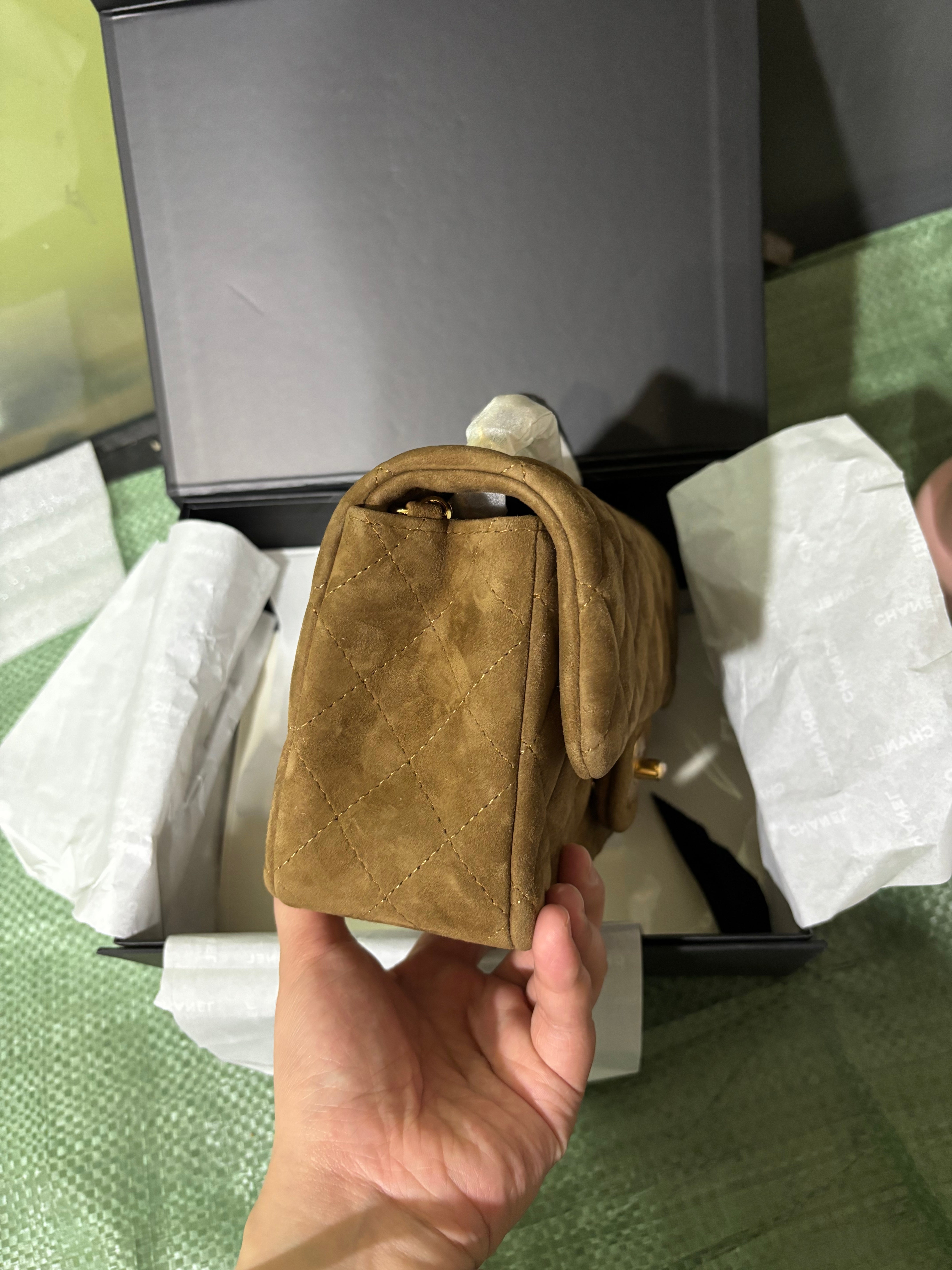 Classic Flap Bag 20cm Brown Suede Gold Hardware