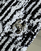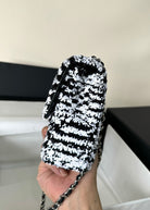 FLAP BAG 20 IN BLACK AND WHITE SAQUINS SILVER HARDWARE