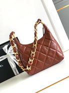 HOBO BAG 22 IN RED BROWN SHINY CALFSKIN GOLD HARDWARE