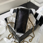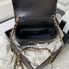 MINI FLAP BAG 13 IN BLACK LAMBSKIN WITH GOLD HANDLE