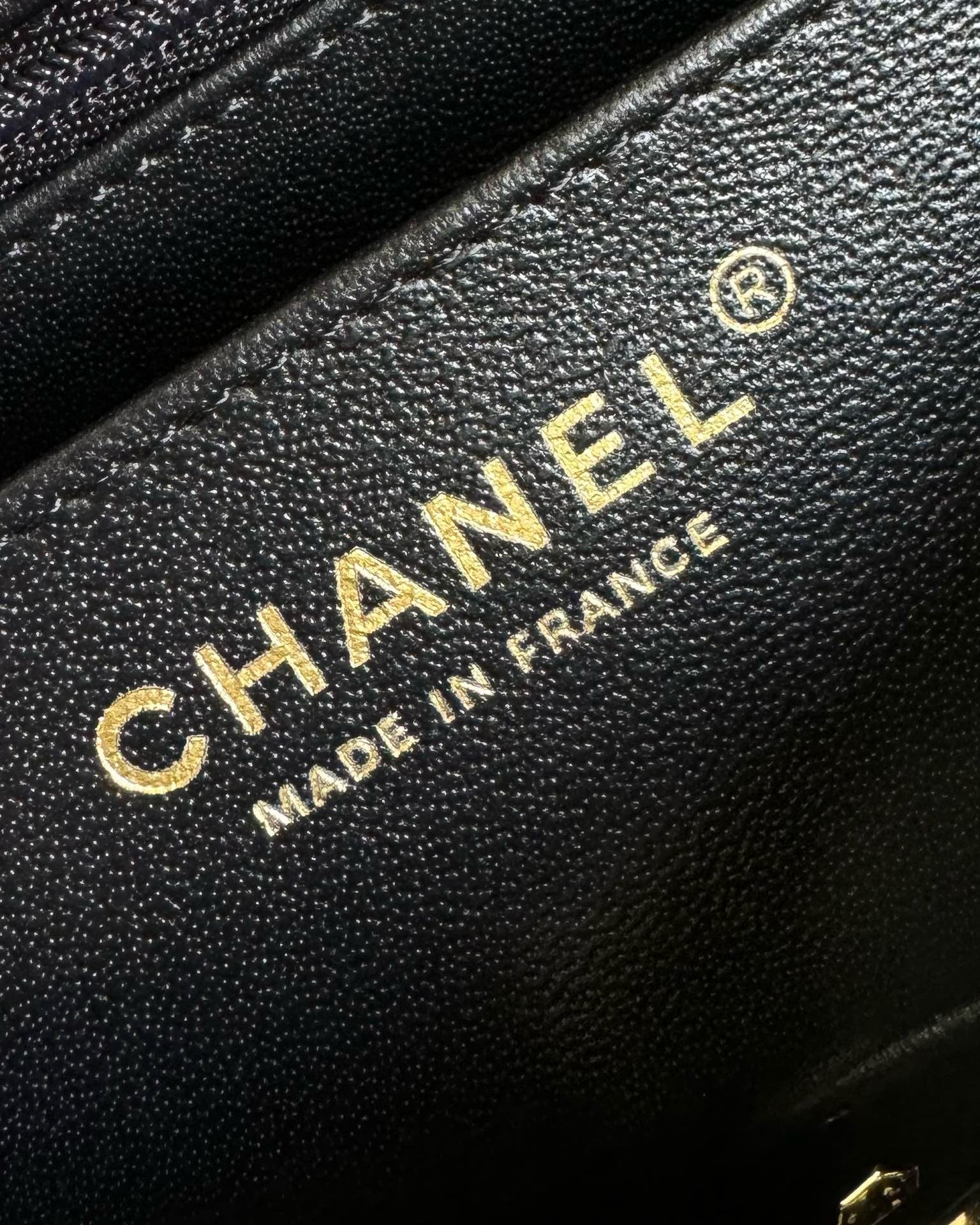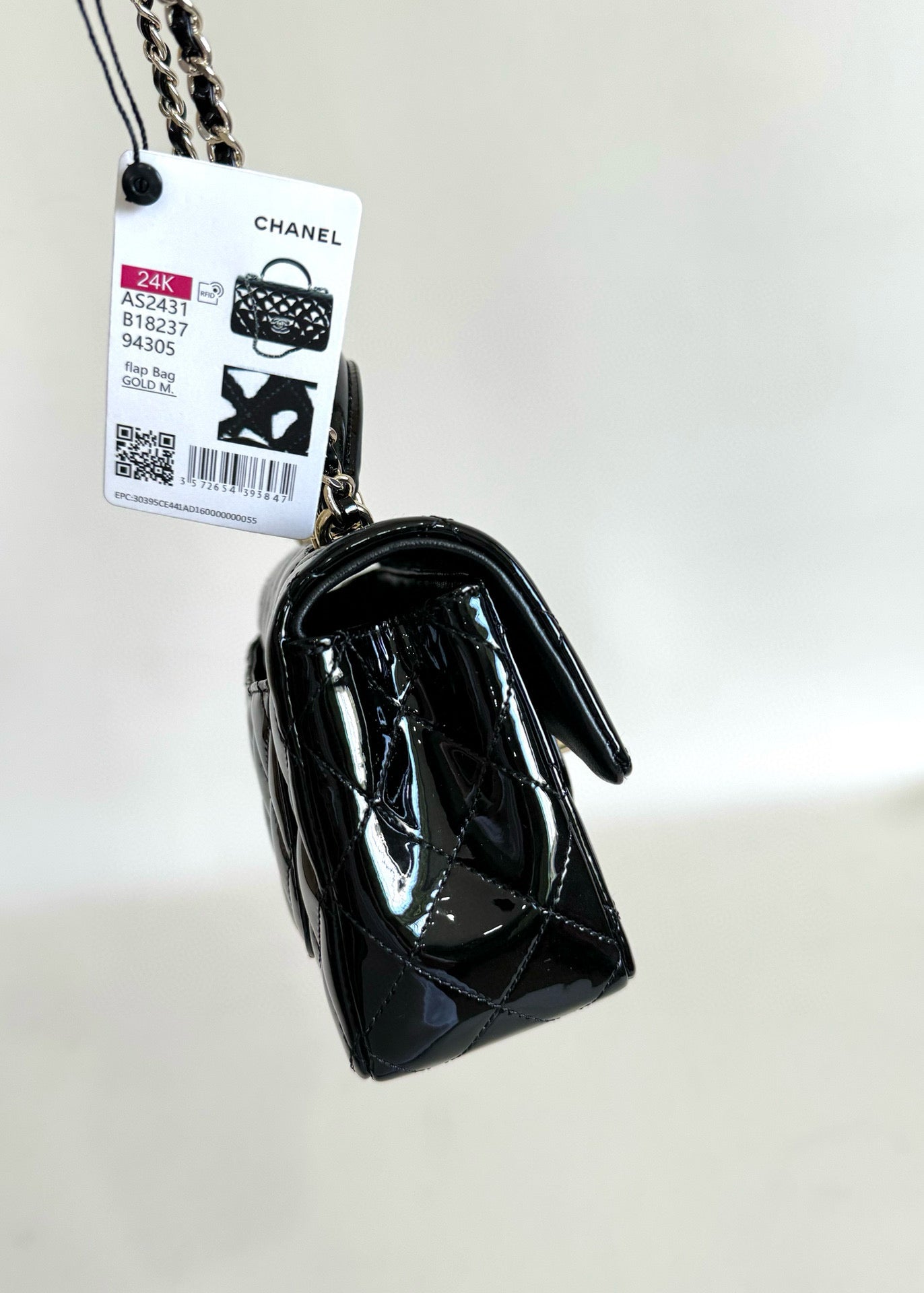MINI FLAP BAG 20 IN BLACK CALFSKIN GOLD HARDWARE