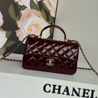 MINI FLAP BAG 20 IN MAHOGANY RED GLOSSY CALFSKIN GOLD HARDWARE