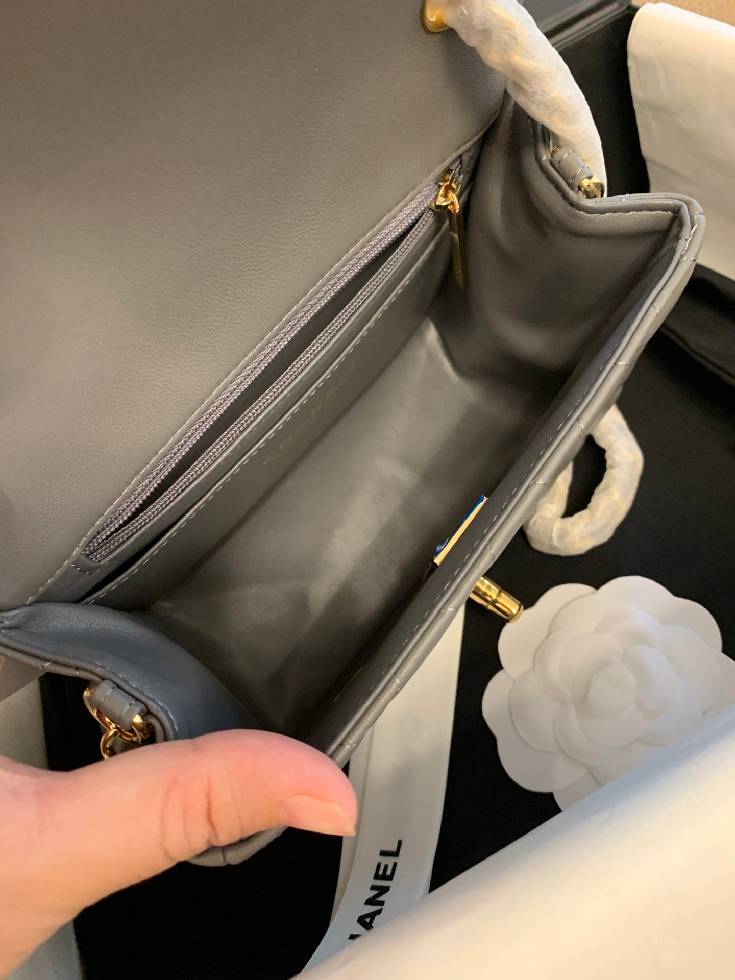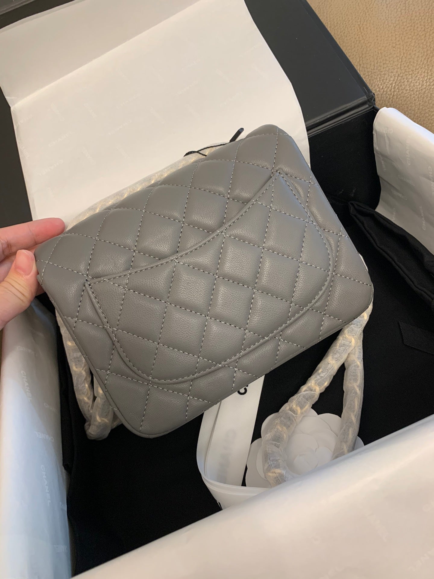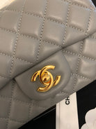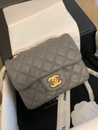 Mini Square Flap Bag 17cm Dark Grey Calfskin Gold Hardware