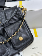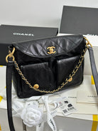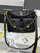 SMALL HIPPIE HOBO POSTMAN BAG 25 IN BLACK CALFSKIN GOLD HARDWARE