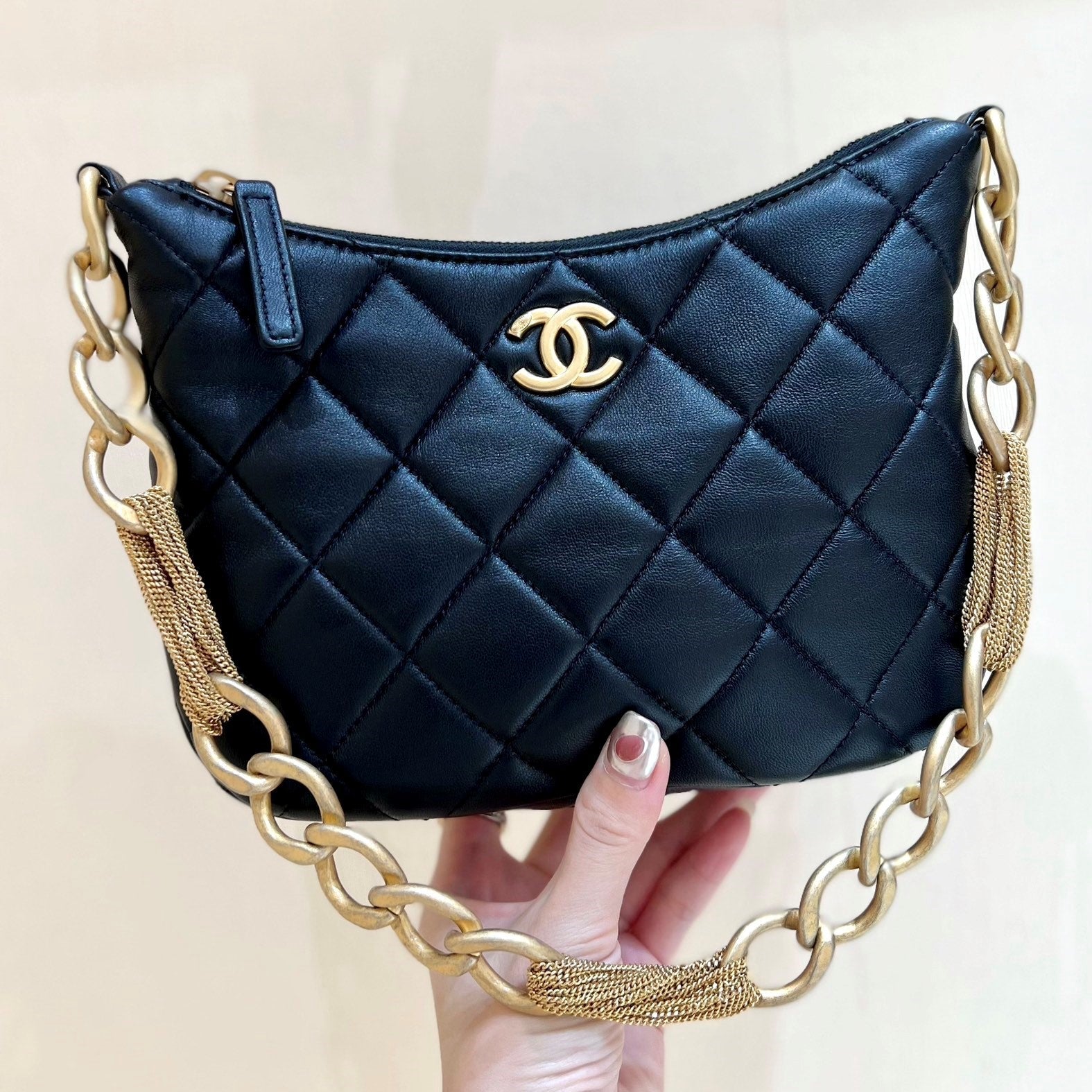 CC 22p Turnlock Hobo 26cm Quilted Black Lambskin Light GHW