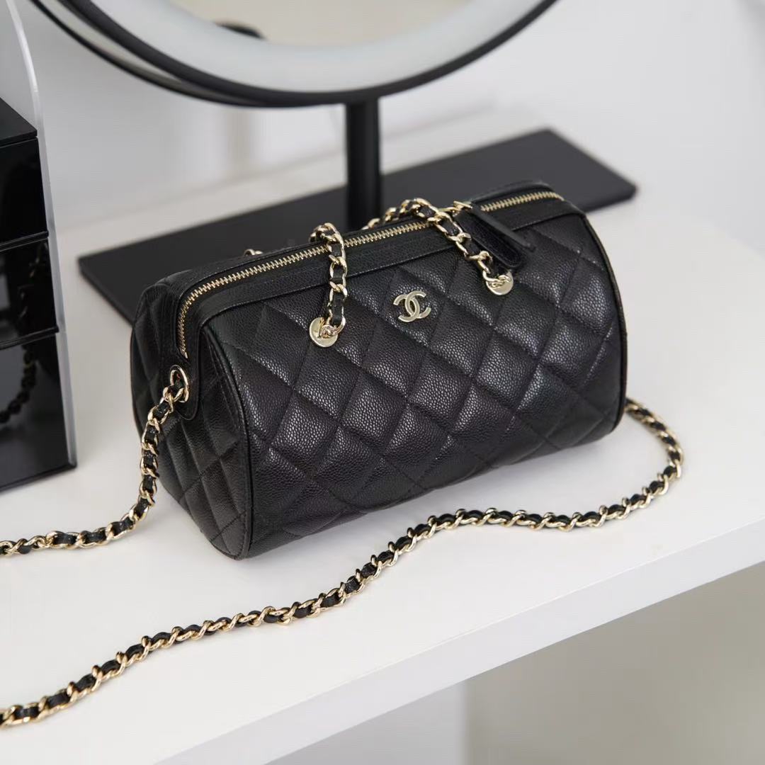 CC 24A Bowling Bag 33cm Black Wrinkled Calfskin GHW