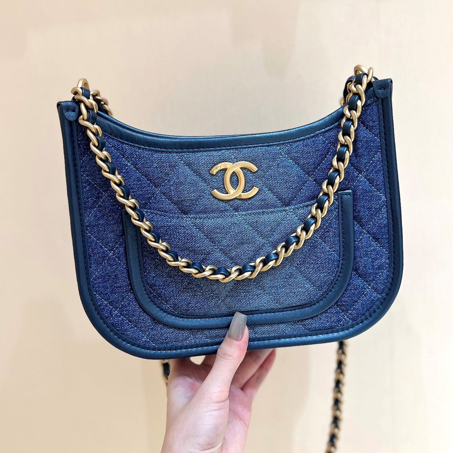 CC 24S AS4532 Shoulder Bag 22cm Blue Denim Light GHW