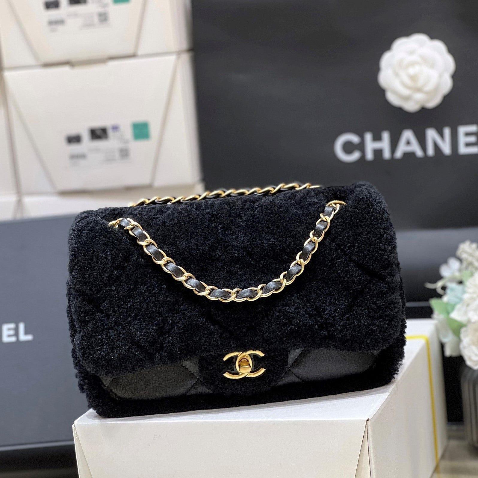 CC 24K Teddy Bear CF 23.5cm Black Lambskin & Fur Light GHW