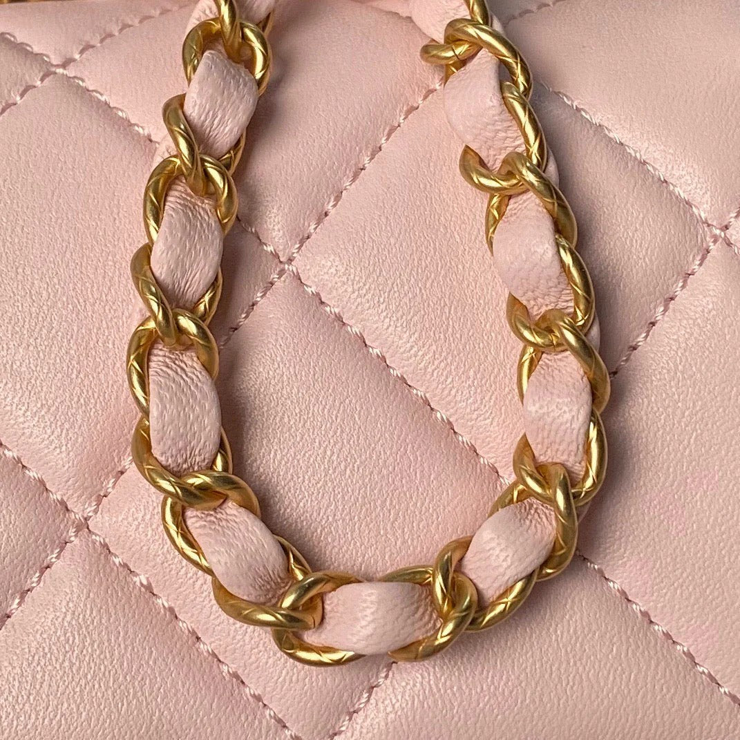 CC 25S FLAP BAG 21 CM IN LIGHT PINK LAMBSKIN WITH TOP HANDLE