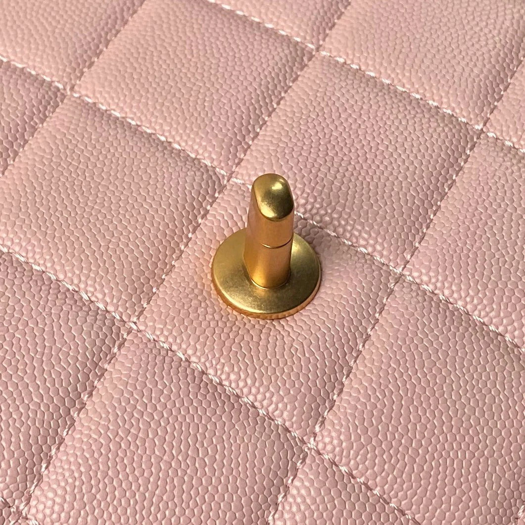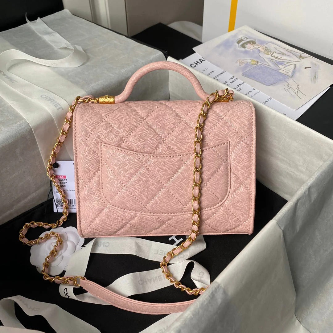 CC 25S FLAP BAG 21 CM IN LIGHT PINK GRAINED LAMBSKIN WITH TOP HANDLE