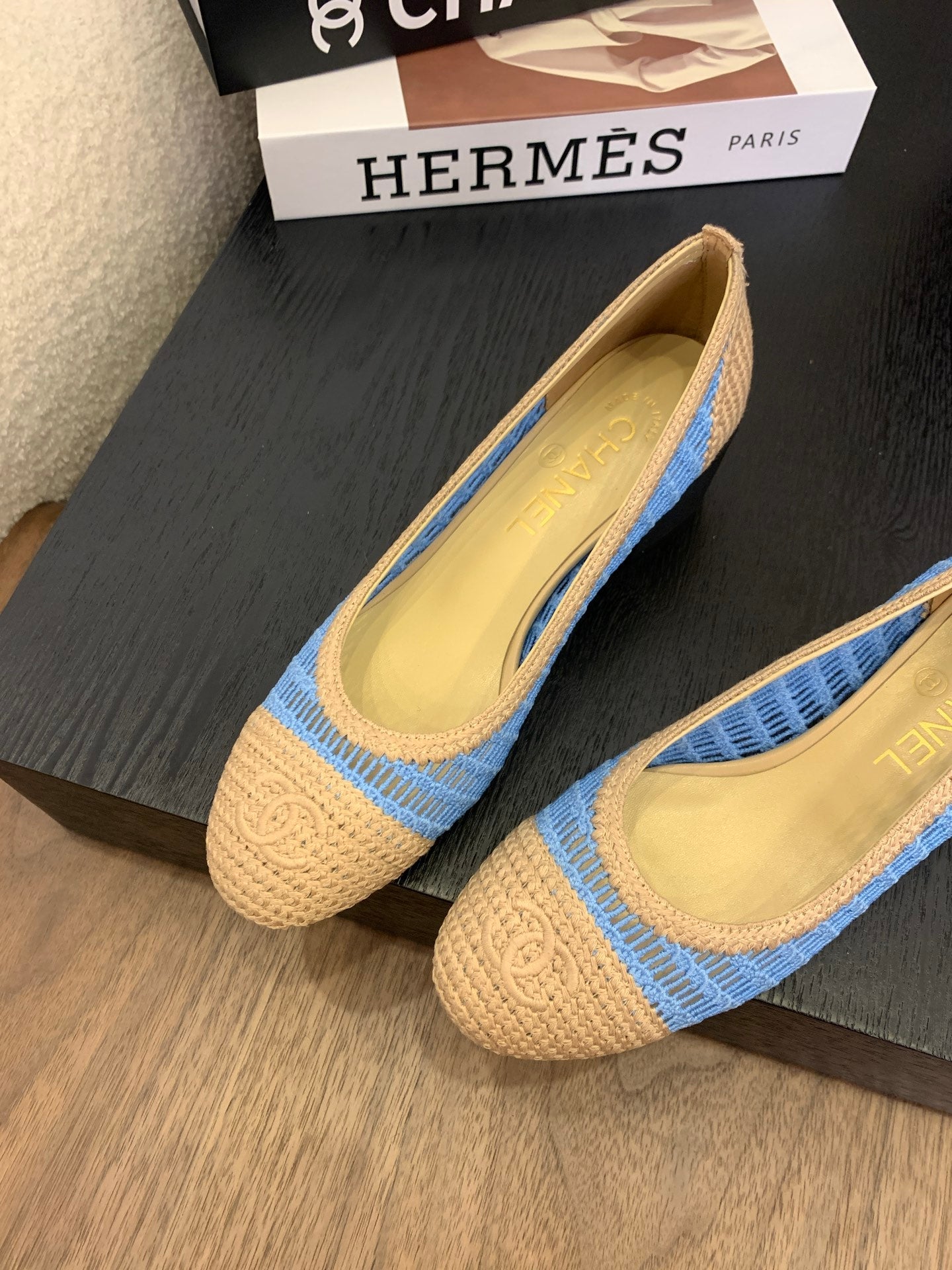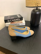 cc 25 ballet flat 50mm beige sky blue raffia 288819