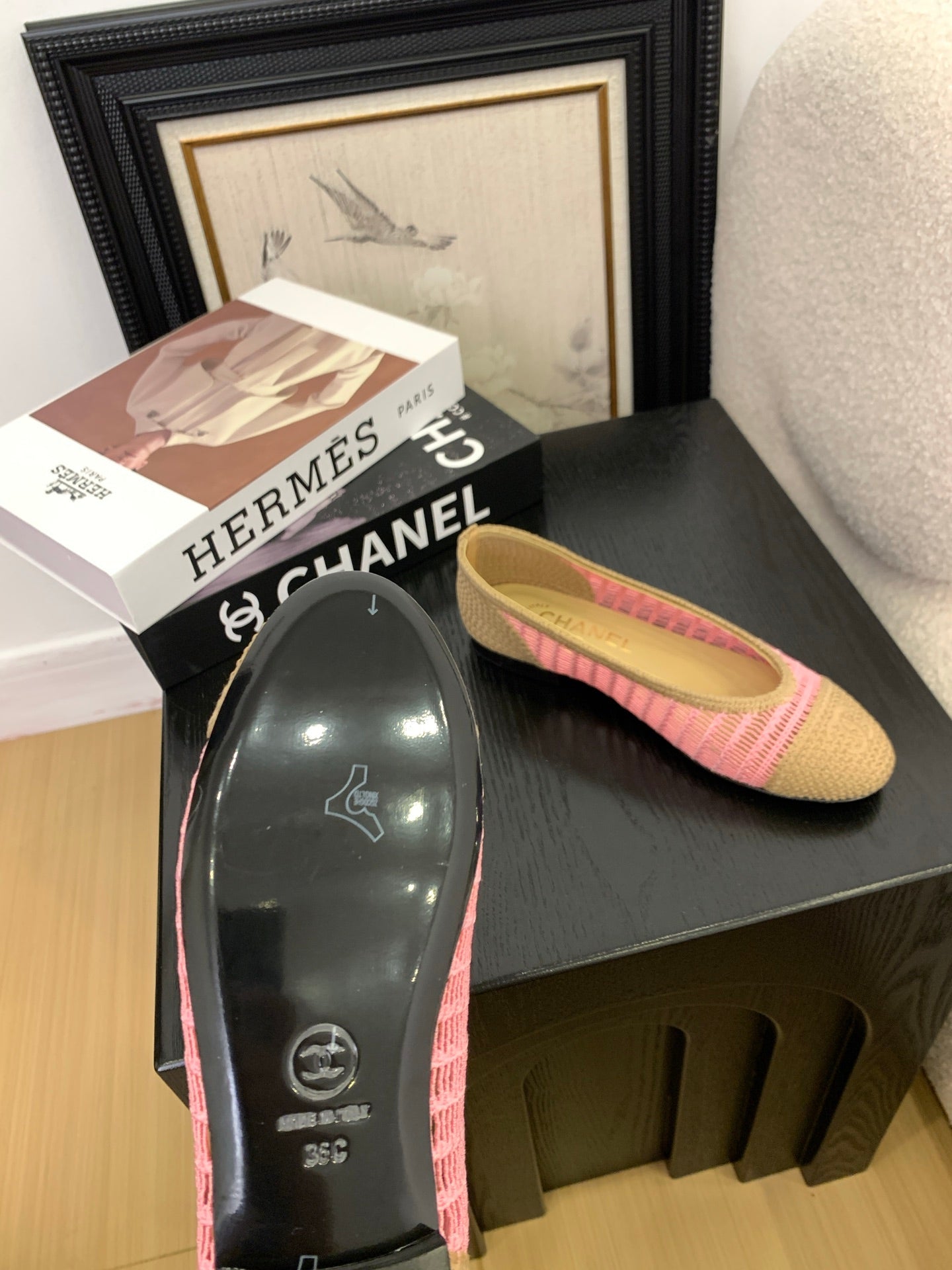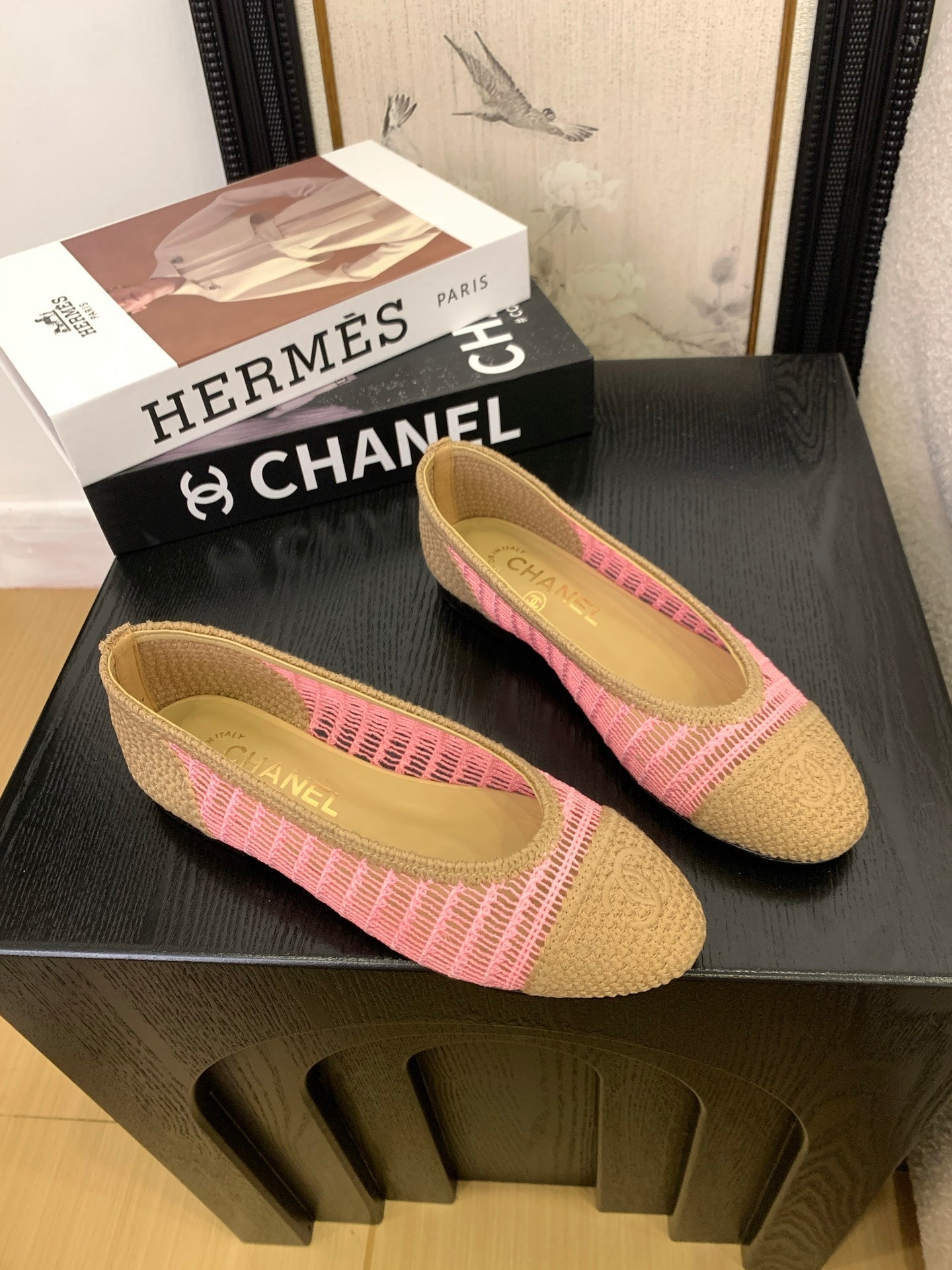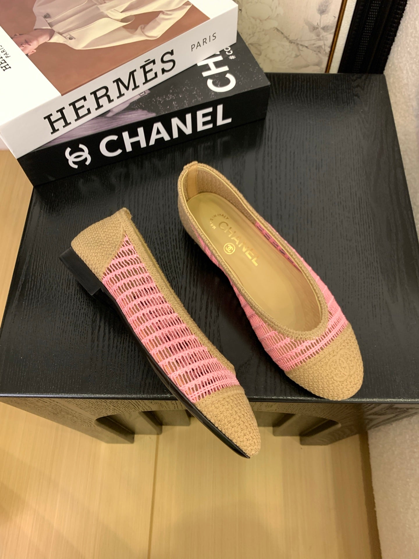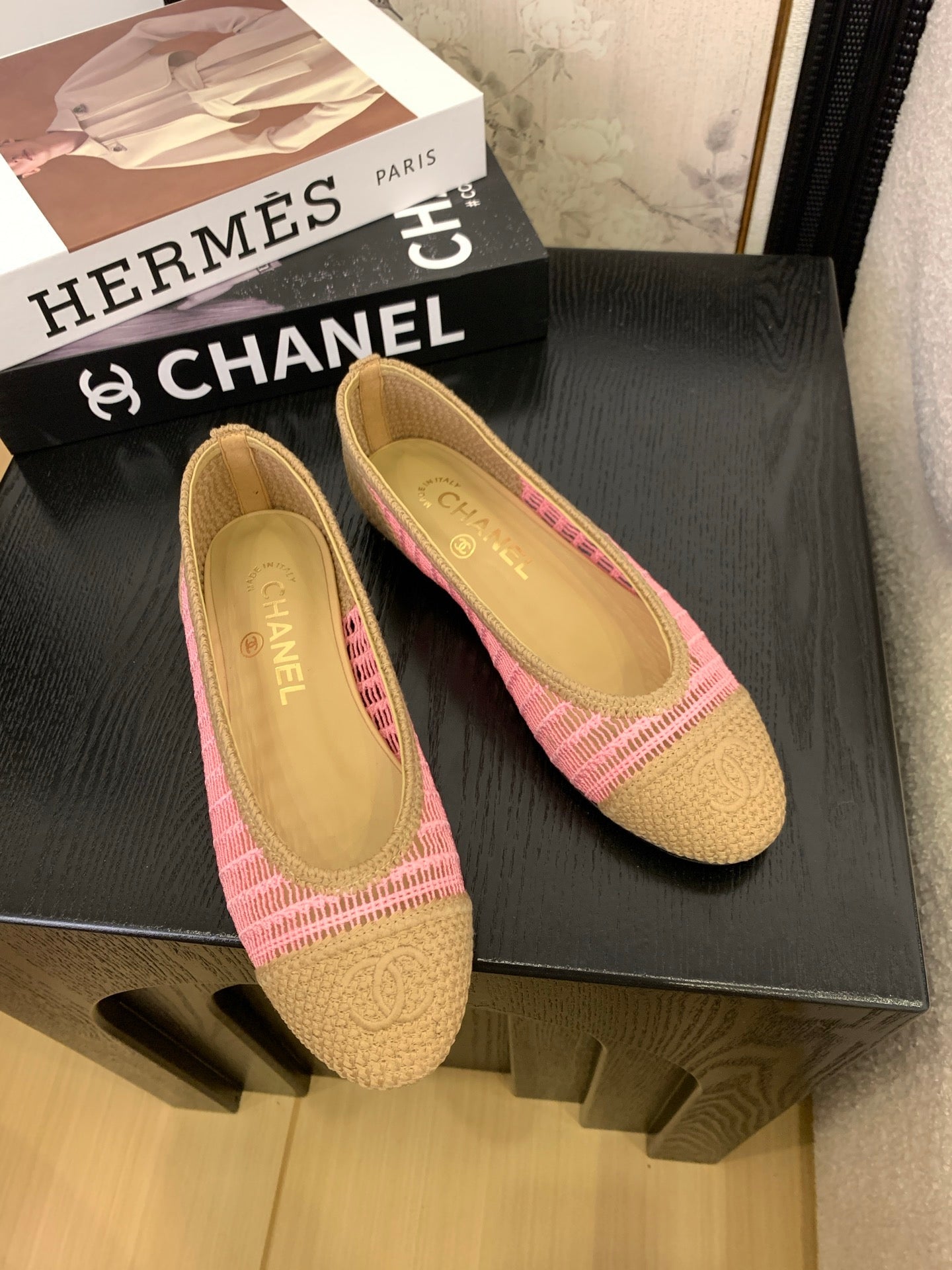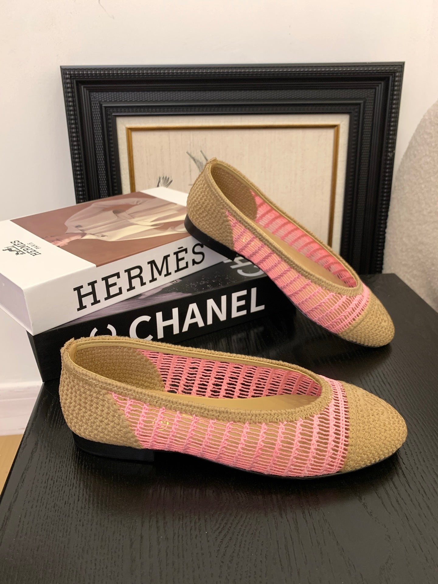 CC 25 Ballet Flat Beige Pink Raffia 277569